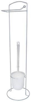Stojak na papier toaletowy i szczotkę do WC biały Nowoczesny stojak na papier toaletowy ze szczotką jest praktycznym dodatkiem w każdej łazience. Stojak wykonany został z wysokiej jakości drutu stalowego pokrytego powłoką chromu. Pojemnikna szczotkę z tworzywa sztucznego przypominającego w …