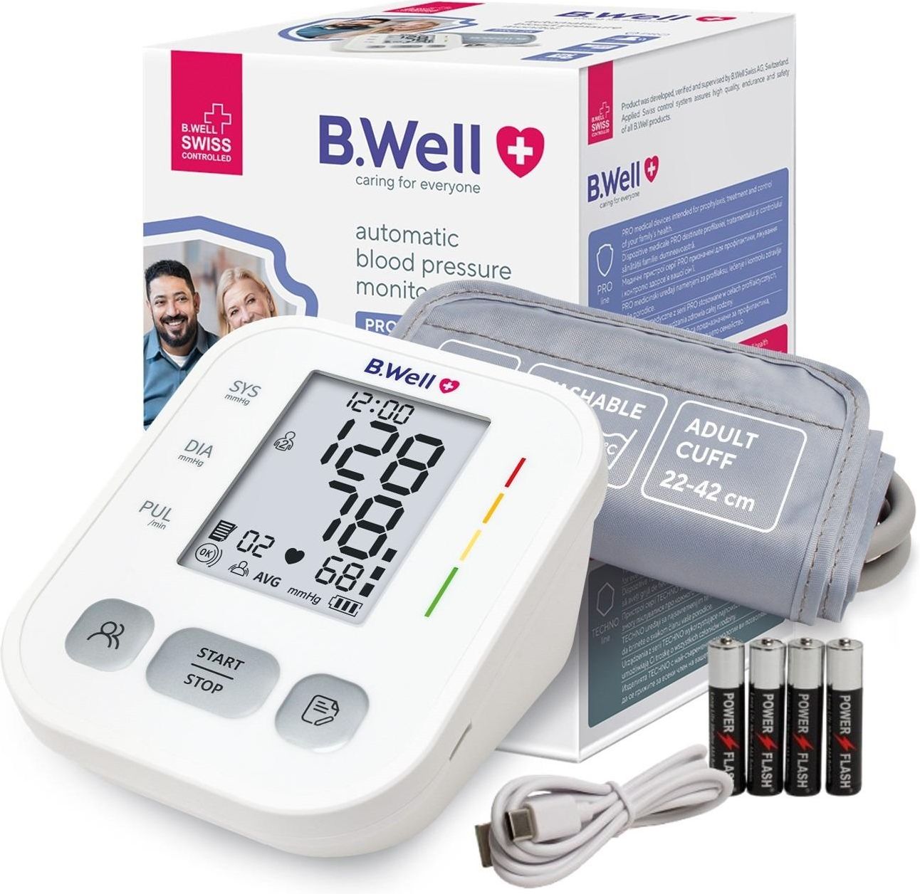 Ciśnieniomierz naramienny automatyczny B.Well PRO-25 PRO-25 to nowoczesny ciśnieniomierz naramienny renomowanej marki B.Well stworzony z myślą o codziennym monitorowaniu zdrowia w domu. Dzięki podwójnej kontroli dokładności i wskaźnikowi arytmii zapewnia rzetelne i powtarzalne wyniki. NAJWAŻNIEJSZE FUNKCJE URZĄDZENIA: ➡️Automatyczny pomiar ciśnienia krwi i tętna na ramieniu ➡️Posiada wskaźnik arytmii - wykrywa zaburzenia rytmu serca ➡️Posiada wskaźniki prawidłowego ułożenia mankietu i ruchu podczas pomiaru ➡️Posiada mankiet o regulacji od 22 do 42cm odpowiedni dla osób o normalnej wadze i otyłych ➡️Wyposażony jest we wbudowaną pamięć 2 x 99 pomiarów z datą i godziną ➡️Liczy średnią z ostatnich 3 pomiarów – dla wiarygodnego wyniku ➡️Czytelny duży wyświetlacz ➡️Wskaźnik zużycia baterii ➡️Medyczny certyfikat CE 0044 B.Well PRO-25 to nowoczesny, w pełni automatyczny ciśnieniomierz naramienny zaprojektowany z myślą o codziennej kontroli zdrowia w warunkach domowych. Urządzenie umożliwia szybki i dokładny pomiar ciśnienia skurczowego, rozkurczowego oraz tętna, a także wykrywa nieregularności rytmu serca (arytmię), zapewniając użytkownikowi kompleksowy obraz kondycji układu krążenia. Dzięki wykorzystaniu oscylometrycznej metody pomiaru oraz zastosowaniu zaawansowanej technologii analizy sygnału, pomiar dokonywany jest już w trakcie pompowania mankietu, co znacząco skraca czas badania i podnosi jego komfort. Dokładność pomiarów urządzenia B.Well PRO-25 wynosi ±3 mmHg dla ciśnienia oraz ±5% dla tętna, co czyni go wiarygodnym narzędziem do codziennego monitorowania stanu zdrowia. Urządzenie spełnia wymogi Europejskiego Towarzystwa Nadciśnienia Tętniczego (ESH) i posiada certyfikat zgodności z europejskimi normami dla sprzętu medycznego klasy IIa. DANE TECHNICZNE Model: PRO-25 Wyświetlacz: LCD o wymiarach 44,5 × 58,5 mm Zasilanie: 4 × baterie AAA 1,5 V; kabel USB 5V/1A Wymiary urządzenia: 118 × 98 × 62,5 mm Masa urządzenia: 220 g (bez baterii) Obwód mankietu: 22–42 cm (rozmiar M–L) Pamięć: 2×99 zapisów z datą i godziną dla każdego użytkownika Zakres pomiarowy: skurczowe: 57–255 mmHg; rozkurczowe: 25–195 mmHg; tętno: 40–199 uderzeń/min Dokładność: ciśnienie: ±3 mmHg; tętno: ±5% Wskaźnik nieregularnej pracy serca – arytmii Wskaźnik prawidłowego ułożenia mankietu Wskaźnik wykrywania poruszenia ciała podczas pomiaru Automatyczne wyłączenie Tryb automatycznego oszczędzania energii – aparat wyłącza się po 1 min Wskaźnik zużycia baterii Przewidziana grupa pacjentów to: młodzież w wieku od 12 do 18 lat oraz dorośli w wieku powyżej 18 lat. ZASILANIE ✔️ kabel USB-C – możliwość podłączenia do dowolnego źródła zasilania ✔️ 4 baterie AAA – idealne w podróży. Czas pracy na bateriach wynosi około 2 miesięcy przy wykonywaniu 3 pomiarów dziennie. ✔️ automatyczne wyłączanie – oszczędność energii ZESTAW ZAWIERA: ✅ Ciśnieniomierz naramienny B.Well PRO-25 ✅ Mankiet M–L (22–42 cm) ✅ Kabel USB-C ✅ 4 baterie AAA ✅ Etui ochronne ✅ Instrukcja w języku polskim ✅ Oryginalne opakowanie ✅O marce B.Well Swiss AG to szwajcarski producent urządzeń medycznych, gwarantujący najwyższą jakość wykonania i skuteczność działania. Jako firma o międzynarodowym zasięgu oferujemy produkty dla całej rodziny ułatwiające prowadzenie zdrowego i aktywnego stylu życia. Wierzymy, że zdrowie to coś więcej niż brak choroby – to poczucie bezpieczeństwa, komfortu i spokoju. Dlatego tworzymy urządzenia, które pomagają zadbać o każdego członka rodziny – od bezbronnych niemowląt, przez energicznych nastolatków, po naszych starszych rodziców i dziadków. To jest wyrób medyczny. Używaj go zgodnie z instrukcją używania lub etykietą. Ten produkt posiada oznaczenie CE o numerze jednostki notyfikowanej 0044 Ten produkt posiada deklarację zgodności UE - spełnia wymogi Unii Europejskiej. Do produktu jest dołączona etykieta i/lub instrukcja obsługi w języku polskim. Ciśnieniomierze B.Well są zarejestrowane w URZĘDZIE REJESTRACJI PRODUKTÓW LECZNICZYCH, WYROBÓW MEDYCZNYCH I PRODUKTÓW BIOBÓJCZYCH.