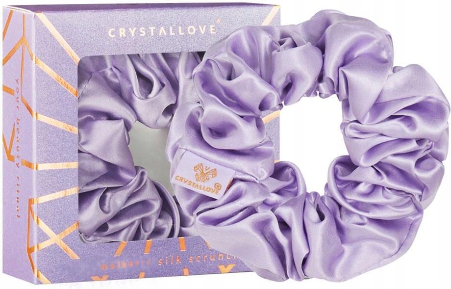 CRYSTALLOVE SILK SCRUNCHIEGumka do włosów z jedwabiu - lilacGumka do włosów z jedwabiu CRYSTALLOVE to gwarancja miękkości, delikatności oraz naturalności jedwabiu. Jest niezwykle przyjazna dla włosów, zapobiega ich plątaniu i przepięknie wygląda. Posiada wewnątrz elastyczną gumkę, która nie szarpie włosów. Włókna jedwabiu należą także do najbardziej odpornych na rozciąganie. Wykonana jest ręcznie z jedwabiu posiadającego certyfikat Oeko-Tex, który świadczy o bezpieczeństwie i wysokiej jakości produktu.ZA CO TWOJE WŁOSY POKOCHAJĄ JEDWAB? jedwab, dzięki swojej delikatnej, gładkiej i śliskiej strukturze, nie podrażnia ani nie łamie włosów włosy pozostają nawilżone oraz pełne blasku jest hipoalergiczny i bezpieczny dla wrażliwych włosów jedwabne scrunchies przepięknie prezentują się na każdych włosach, są ponadczasowe! IDEALNA STYLIZACJAGumki do włosów z jedwabiu są nie tylko przepiękne ale także stanowią idealny dodatek do każdej stylizacjiCRYSTALIZED SILK SCRUNCHIE: 1 x gumka wykonana z jedwabiu w kolorze liliowym o średnicy około 12cm, wykonana z jedwabiu morwowego o włóknach grubości 22 momme, najwyższej klasy 6A. Posiada wewnątrz elastyczną gumkę 1 x eleganckie pudełko CRYSTALLOVE IDEALNY POMYSŁ NA PREZENTGumka do włosów z jedwabiu CRYSTALLOVE zapakowana jest w przepiękne pudełko, które pełni również funkcję ochronną zabezpieczając jedwab przez zanieczyszczeniami z zewnątrz. Gumka do włosów wykonana z jedwabiu to wspaniały pomysł na prezent dla wielbicieli wyjątkowych produktów Stwórz swój rytuał pielęgnacyjny z gumką do włosów CRYSTALLOVE. Gumka wykonana jest z przepięknego jedwabiu w kolorze liliowym. Oferujemy najlepsze połączenie połysku, grubości, miękkości i trwałości jedwabiu Gumki wykonane są z naturalnego jedwabiu mulberry o gramaturze 22 momme, klasie 6A, posiadającym certyfikat Oeko-Tex