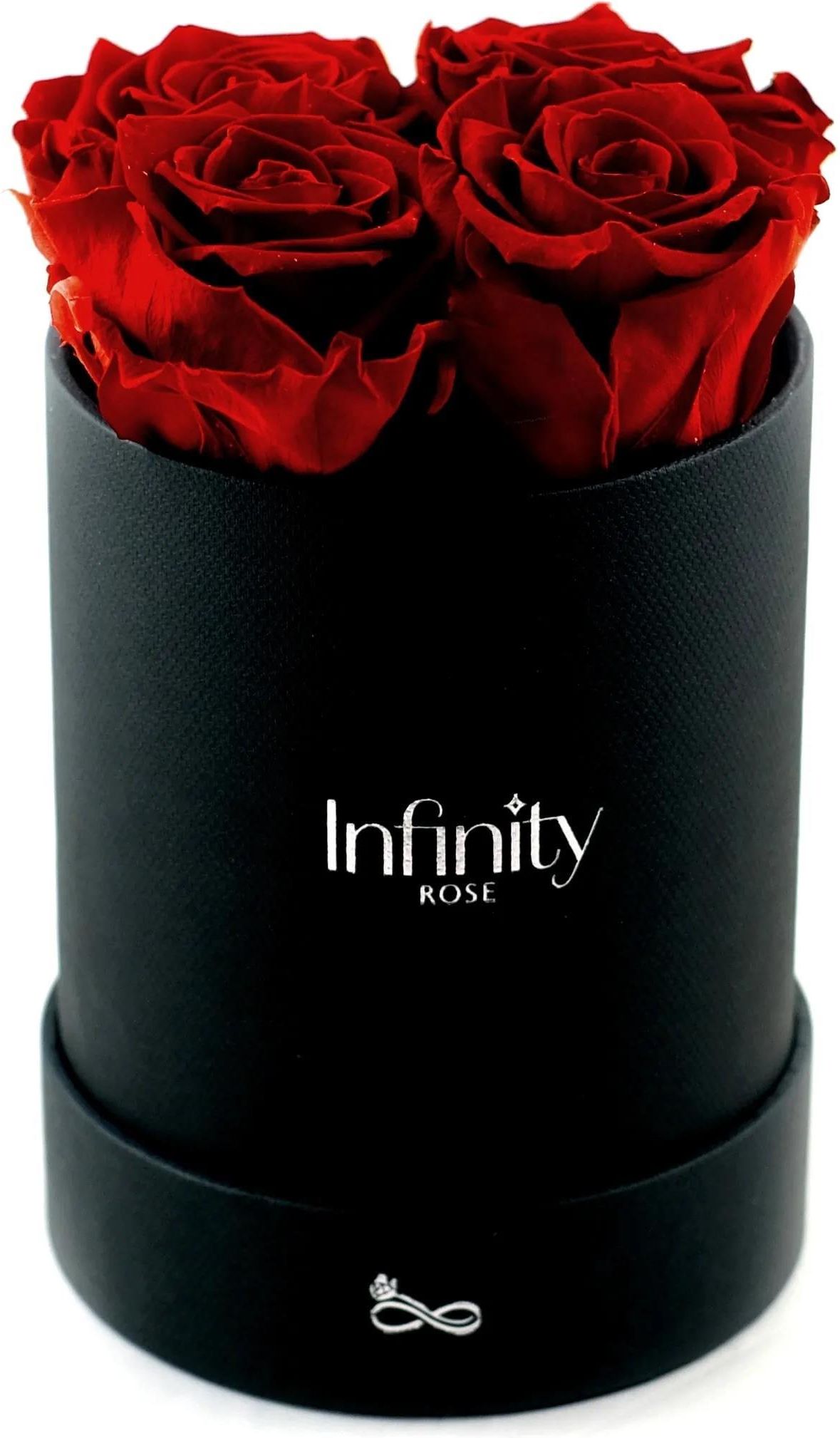 Doceniamy urok drobnych gestów. Wieczne róże w klasycznej odsłonie otulone eleganckim pudełkiem to idealny wybór dla osób kochających subtelne piękno.Wyznaj swoje uczucia z pasją. Ta kompozycja kwiatowa składa się z ekskluzywnych, królewskich róż w kolorze czerwonym, który przez wielu uważany jest za oznakę miłości, energii, witalności i zaangażowania. Czerwony kolor kwiatów podkreśli siłę Twoich uczuć.Flower box Infinity Rose Classic to idealny prezent i trwały dodatek do każdego domu, biura, gabinetu czy salonu kosmetycznego. Idealne na każdą uroczystą okazję - czy to zaręczyny, ślub, urodziny, rocznicę, chrzciny, Walentynki, a także jako prezent w ramach podziękowania czy uznania. Wszystkie flower boxy są wykonywane ręcznie na indywidualne zamówienie. W naszym pudełku mieści się 4 róże Rozmiary pudełka: średnica 10 cm, wysokość 13 cm