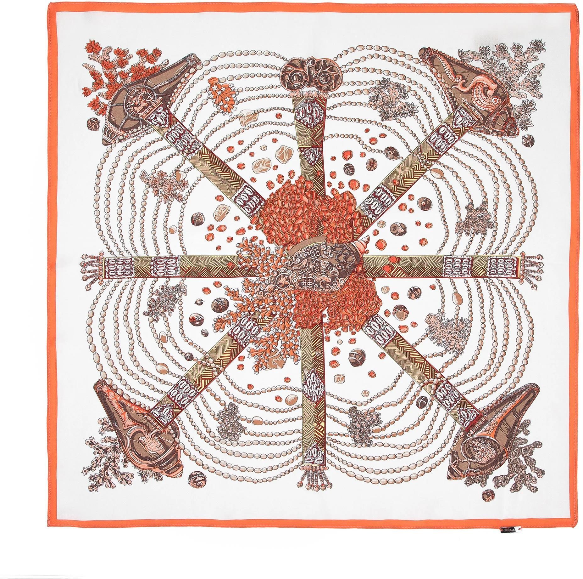 Damska apaszka z jedwabiu w motyw morski biało - pomarańczowa Żyrardów