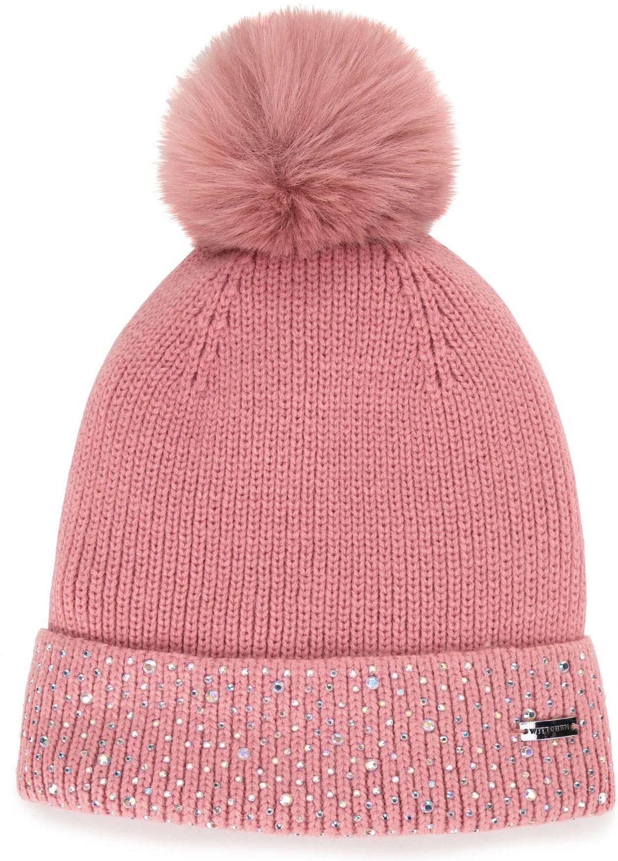 Damska czapka zimowa z ozdobionym ściągaczem różowa Żyrardów
