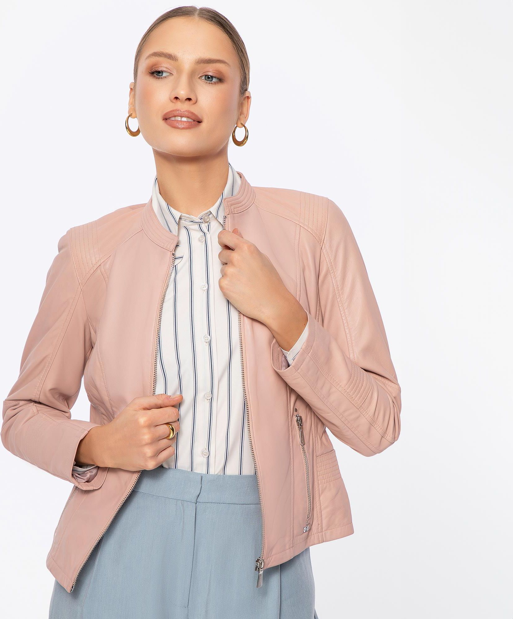 Opinie Damska kurtka ze skóry owczej z przeszyciami różowa Żyrardów