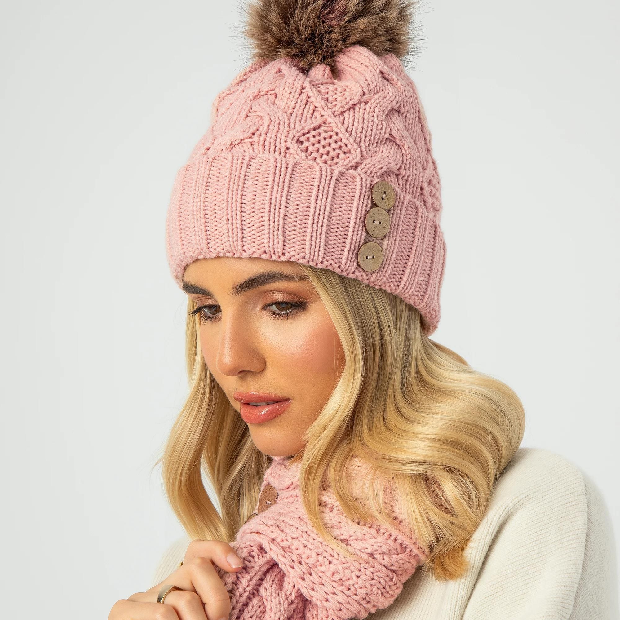 Zimowy komplet damski czapka i szalik WITTCHEN 99-SF-013-P WITTCHEN Stylowy zestaw dla kobiet - elegancja i ciepło na zimowe dni Uzupełnij swoją zimową garderobę o wyjątkowy komplet czapkę i szalik WITTCHEN 99-SF-013-P, który wyróżnia praktyczny design w eleganckiej oprawie. Wykonany w 100% z akrylu, zestaw zapewnia niezbędne ciepło oraz komfort noszenia, nawet podczas najchłodniejszych dni. Miękka, delikatna faktura jest przyjemna dla skóry, a efektowny pompon z futra oraz trzy guziki dodają całości rustykalnego akcentu. Dzięki wywijanemu ściągaczowi czapka idealnie dopasowuje się do głowy, zapewniając ochronę przed wiatrem, a oryginalny splot czyni ten zestaw modnym dodatkiem do każdej stylizacji. Ten elegancki różowy komplet sprawdzi się zarówno w codziennych, jak i bardziej wyszukanych stylizacjach. Możesz go łączyć z wełnianymi płaszczami, puchowymi kurtkami czy parkami. To idealny wybór dla kobiet, które cenią sobie styl, wygodę i ciepło, niezależnie od okazji. Stawiając na ten model, nie tylko wyrazisz swoją osobowość, ale jednocześnie zadbasz o komfort w zimowe dni. Dlaczego warto? Miękki i ciepły akryl – zapewnia izolację termiczną, chroniąc przed chłodem. Stylowe detale – guziki i pompon dodają elegancji i modnego charakteru. Uniwersalny design – zestaw idealnie pasuje do każdej zimowej stylizacji, od casualowej po elegancką. Dodaj do swojej zimowej garderoby zestaw WITTCHEN, który łączy styl i funkcjonalność na najwyższym poziomie. Materiał: 100% Akryl Wymiary Wysokość czapki: 20 cm Obwód czapki: 44 cm Szerokość czapki: 22 cm Wymiary szalika: 11 cm x 78 cm Stylowy i ciepły zestaw czapki i szalika WITTCHEN 99-SF-013-P wykonany w 100% z akrylu to idealny dodatek do zimowych stylizacji. Pompon i guziki podkreślają elegancki charakter, a wywijany ściągacz zapewnia komfort i ochronę przed zimnem.