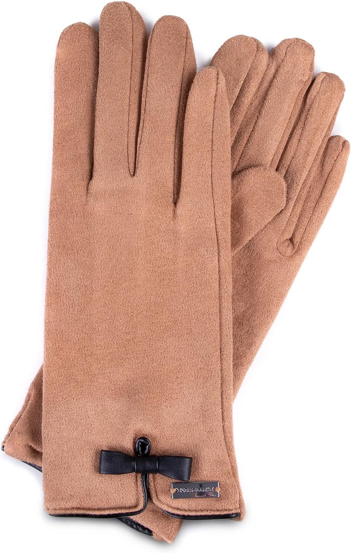 Damskie rękawiczki nieocieplane. Te ponadczasowe rękawiczki przydadzą Ci się jesienią i wiosną. Są miękkie i idealnie dopasują się do dłoni. Wykonane zostały z przyjemnego w dotyku tworzywa przypominającego zamsz. Mała kokarda dopełnia stylowe wycięcie, które podkreśli nadgarstek. Noś je do eleganckiego płaszcza lub dodaj szyku ulubionej pikowanej kurtce. Damskie rękawiczki z kokardką to świetny wybór na wiele okazji, dla każdej eleganckiej kobiety.Nasza rada: to świetne codzienne rękawiczki. 100% poliester; bez podszewki; mała kokardka; wycięcie na nadgarstku; nieocieplane. Rozmiar S/M M/L Długość (cm) 23 23,8 Szerokość (cm) 8,3 8,6 Długość śr. palca (cm) 8 8,3 Tolerancja: max. 0,5 cm w długości i max. 0,3 cm w pozostałych wymiarach.