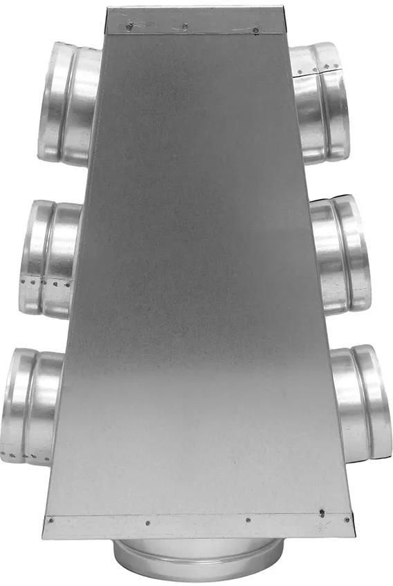 Skrzynka rozdzielcza o symbolu SRRS125/6x125-OC Skrzynka rozdzielcza z króćcami "Spiro". Do budowy systemów dystrybucji gorącego powietrza z kominka. Dane techniczne Dz = 123 mm dz = 123 mm Średnica kroćca wejściowego: 125 [mm] Średnica kroćców wyjściowych: 125 [mm] Materiał wykonania: blacha ocynkowana Zastosowanie do dystrybucji gorącego powietrza z kominka