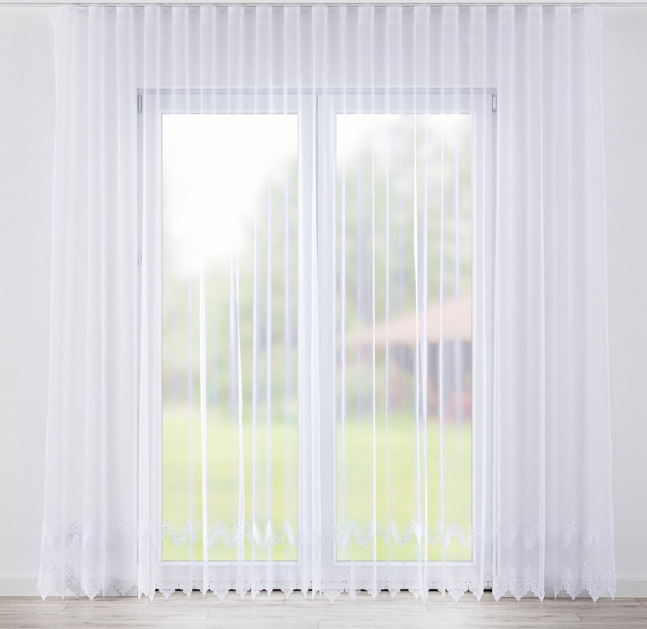 Firana na taśmie wave do montażu na szynie przysufitowej. Doskonale prezentuje się na oknie tworząc równe, głębokie fale. Firana posiada haczyki włożone w taśmę w odstępach od siebie o 13cm. Dodatkowo dołączono do niej glidy na specjalnym sznurku, które należy włożyć w haczyki na firanie, a następnie umieścić w otworze szyny przysufitowej. Tak zawieszona firana tworzy niepowtarzaną dekorację okna, która świetnie zaprezentuje się w komplecie z zasłonami na taśmie wave. Firany wykończone są wszytą w dół ołowianką. Wyjątek stanowią firany szyte z następujących tkanin:Woal 186-36, 186-37, 184-07, 186-39, 186-35, 168-38, 185-10 (dekoracyjny haft) Wymiarowanie: Szerokość firany to długość szyny (szerokość firany dotyczy firany po zmarszczeniu – gotowej do zawieszenia). Wysokość mierzymy od dołu szyny do podłogi odejmując 0,5 – 2cm w zależności od upodobań. Pamiętajmy, że szyna zawsze będzie widoczna jest to warunkiem prawidłowego działania systemu. Uwaga: Wymiary produktów wykonanych z tkanin objęte są tolerancją w granicach +/- 5cm na szerokości oraz +/- 2cm na długości. Margines błędu w wymiarach jest wynikiem właściwości materiału. Ważne: Standardowo do firan na taśmie wave dodajemy sznurek z glidami dedykowanymi szynom PCV. Jeśli posiadasz szyny aluminiowe, poinformuj nas o tym w uwagach do zamówienia. Do Twojego zamówienia dołączymy sznurek z glidami dedykowanymi szynom aluminiowym.