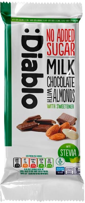 Czekolada mleczna z migdałami bez dodatku cukru Diablo, 75g (Diablo Sugar Free) - Diablo Sugar Free Czekolada mleczna z migdałami bez dodatku cukru Diablo, 75 g Czekolada mleczna z migdalami bez dodatku cukru Diablo, 75 g to produkt dla tych, którzy oczekują czegoś więcej od zwykłej tabliczki …