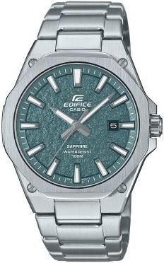 Zegarek Casio Edifice EFR-S108DE-3AVUEFZegarek męski Casio Edifice EFR-S108DE -3AVUEF na stalowej bransolecie z szafirowym szkłem. Klasyczny zegarek z serii EDIFICE SLIM model EFR-S108DE o wyjątkowo subtelnej, delikatnej kopercie z szafirowym szkłem. Ten analogowy model z trzema wskazówkami ma smukłą obudowę o grubości 7,8 mm, która wpływa i poprawia dopasowanie koperty do nadgarstka. Zegarek może pochwalić się płaskim ośmiokątnym pierścieniem z wykończeniem szczotkowanym, które tworzy sportowy, ale luksusowy design. Teksturowaną tarcze chroni odporne na zarysowania szafirowe szkiełko. Wyposażony w dokładny japoński mechanizm kwarcowy zasilany baterią z funkcją daty. Wnętrze koperty zabezpieczone klasą szczelności 100M, która umożliwia pływanie i nurkowanie wraz z zegarkiem na ręce. Całości dopełnia stalowa elegancka bransoleta z bezpiecznym zapięciem motylkowym.