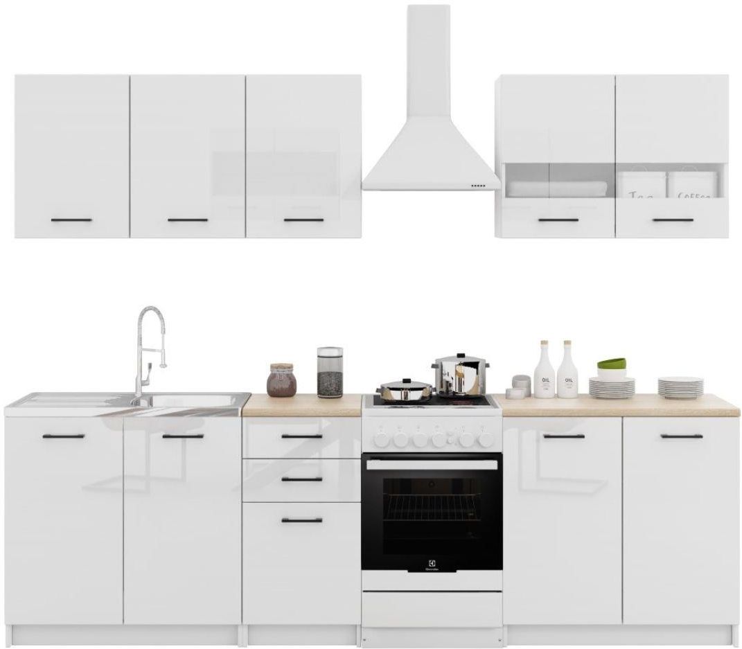 Emka Meble Zestaw kuchenny z witryną TESA 200cm biały połysk z blatem dąb sonoma Żyrardów