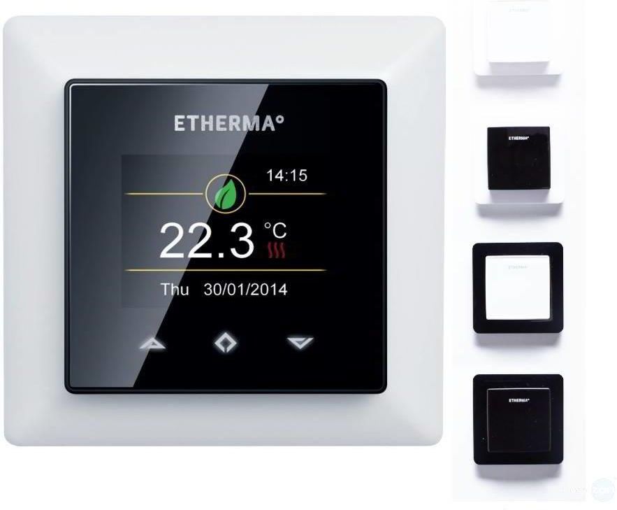 Inteligentny Termostat Pokojowy z kolorowym ekranem dotykowym do nowoczesnych i minimalistycznych wnętrz. Dwuczujnikowy. Ma możliwość zaprogramowania czasu i temperatury na każdy dzień tygodnia. Termostat pokojowy od ETHERMA - eTouch mini Design z dotykowym ekranem To najwyższej generacji, pokojowy regulator temperatury z wbudowaną "inteligencją" od austriackiego producenta systemów ogrzewania płaszczyznowego - firmy ETHERMA. Regulator zapewnia niesamowity komfort sterowania ogrzewaniem ale także może przyczynić się do osiągania sporych oszczędności na ogrzewaniu nawet do 30%. Uniwersalne Zastosowanie eTouch mini przeznaczony jest do większości systemów ogrzewania: elektrycznego i wodnego. Nadaje się do sterowania domowym ogrzewaniem podłogowym, mieszanym i grzejnikami elektrycznymi. Posiada wiele możliwości programowania Dzięki wielu możliwościom programowania jakie daje termostat pokojowy eTouch mini, łatwo dostosujesz temperaturę do swoich potrzeb. Dodatkowo możesz łatwo oszczędzać energię i pieniądze. Wystarczy, że gdy jesteś poza domem, obniżysz temperaturę o kilka stopni a zaoszczędzić nawet do 30% rocznie na rachunkach za ogrzewanie. Tygodniowy program umożliwia zaprogramowanie ogrzewania na każdy dzień tygodnia. Możliwość ustawienia do 5 różnych nastaw temperatury na dobę Tryby pracy: Ogrzewanie / Chłodzenie (zmiana w menu bez konieczności przepinania kabli) Cechy najważniejsze Funkcja grzania / chłodzenia Programowalny Histereza +/ 0,2 do 2° C Kalibracja czujnika Funkcja autouczenie (self-learning) Automatyczna zmiana czasu z letniego na zimowy Funkcja regulacji mocy Wbudowany czujnik temperatury powietrza Na wyposażeniu czujnik podłogowy Tryb blokady-ochrony przed dziećmi Utrzymanie własnych ustawień przez 24h od zaniku napięcia Łatwe do nawigacji menu (j. angielski) Wskazanie bieżącego i przeszłego zużycia energii (w przypadku ogrzewania elektrycznego) Regulacja ogrzewania dostosowana do różnych typów wykładzin podłogowych, glazury, parkietu oraz paneli laminowanych. Pasuje do ramek w standardzie 55