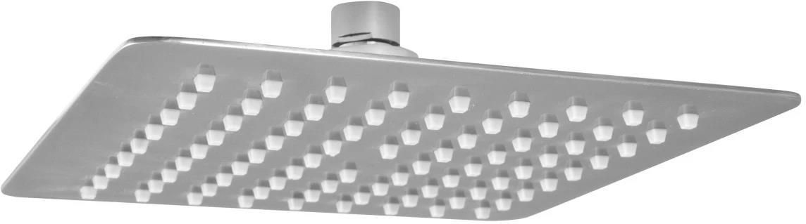 DESZCZOWNICA 20 CM KWADRATOWA CHROM FERRO SLIM Cechy produktu Marka: Ferro Seria: Slim Nr katalogowy: DSN04 Kształt: kwadratowa Dłuższy bok: 20 cm Krótszy bok: 20 cm Kolor: chrom Z ramieniem prysznicowym: nie Kod EAN: 5902194955898 OPIS PRODUKTU wymiary: 20 x 20 cm materiał: stal nierdzewna system łatwego usuwania kamienia wapiennego FerroEasyClean strumień: deszcz przyłącze G1/2 z przegubem kolor: chrom