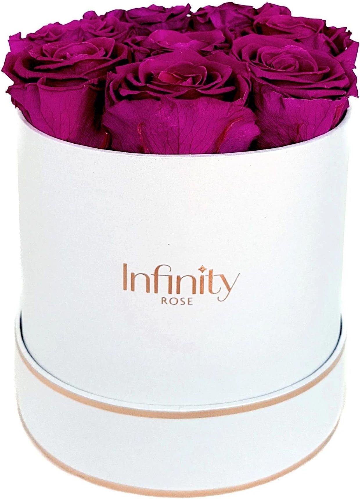 Uwielbiamy złote akcenty! Cechują one naszą wyjątkową kolekcję Infinity Rose Gold, dodając jej prestiżu i ekskluzywności.Ta kompozycja kwiatowa składa się z róż w kolorze głębokiego fioletu, który jest synonimem luksusu, elegancji, przepychu, wspaniałości i szlachetności. Nietypowa głębia koloru pozostawia na obdarowanej osobie unikalne wrażenia.Flower box Infinity Rose Gold to idealny prezent i trwały dodatek do każdego domu, biura, gabinetu czy salonu kosmetycznego. Idealne na każdą uroczystą okazję - czy to zaręczyny, ślub, urodziny, rocznicę, chrzciny, Walentynki, a także jako prezent w ramach podziękowania czy uznania. Wszystkie flower boxy są wykonywane ręcznie na indywidualne zamówienie. W naszym pudełku mieści się 8 róż Rozmiary pudełka: średnica 15 cm, wysokość 15 cm