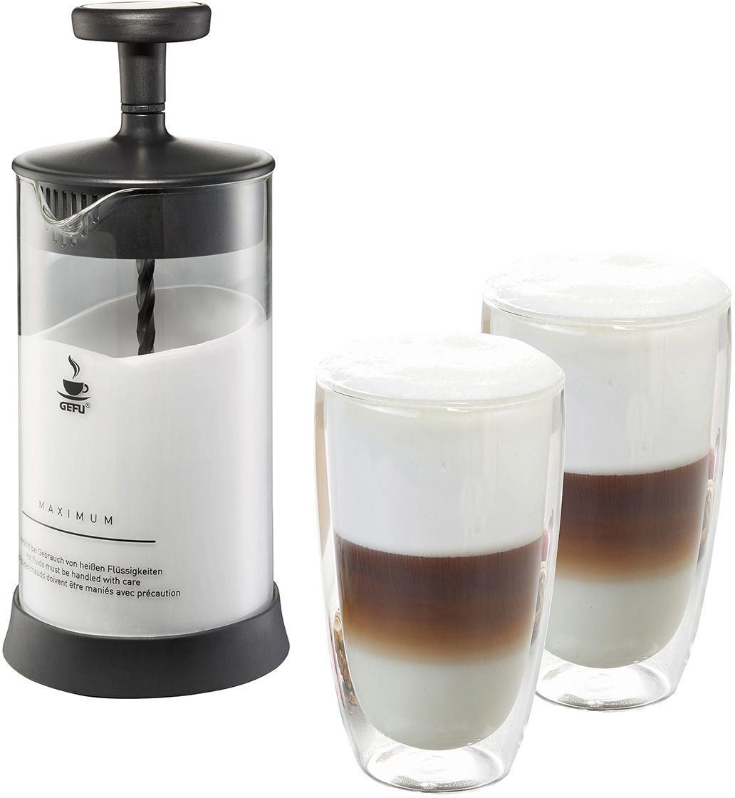 Zestaw GEFU: spieniacz do mleka ANTONIO i 2 szklanki do latte macchiato (350 ml każda)Cappuccino, latte macchiato czy chai latte? Dzięki spieniaczowi do mleka ANTONIO możesz przygotować idealną mleczną piankę w zaledwie kilku prostych krokach. Wystarczy wlać do 270 ml gorącego lub zimnego mleka i …