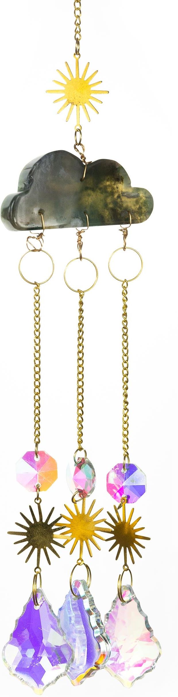 Kryształowy Łapacz Słońca Zawieszka Ozdobna Chmurka z Kamienia Agatu Łapacz Słońca z Kryształami Specyfikacja Materiał: metal, szkło, kamień Kamień: agat mszysty Kolor: złoty, wielokolorowy, tęczowy Symbol: chmurka Długość: około 40 cm Szerokość: około 6 cm Chmurka: około 6x3 cm Ręczne tworzenie …