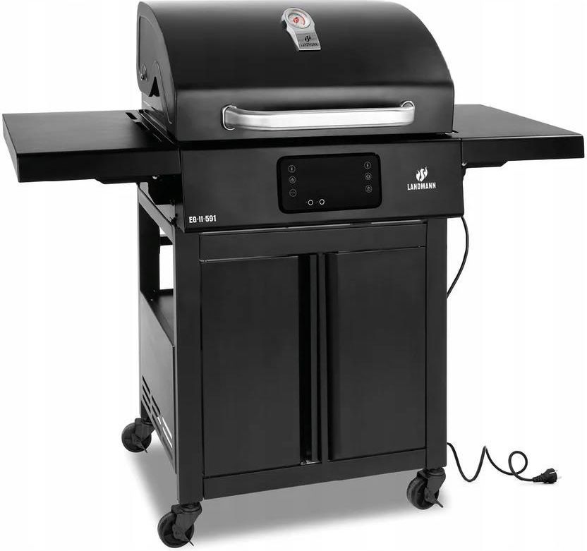 GRILL ELEKTRYCZNY LANDMANN E-GRILL TOWAR NOWY W ORYGINALNYM OPAKOWANIU (Opakowanie lekko podniszczone podczas magazynowania ) ! DOSTĘPNY OD RĘKI ! Grill elektryczny to idealne rozwiązanie dla osób, które nie lubią bawić się z ogniem, węglem i gazem. Wystarczy jeden przycisk, który sprawi, że już w kilka chwil komora do grillowania zrobi się gorąca i będzie można przyrządzić smaczne jedzenie. BEZ GAZU I WĘGLA: mocny elektryczny grill firmy LANDMANN z 2 oddzielnymi strefami grillowymi DUŻO MIEJSCA NA GRILLOWANIE: 2 emaliowane ruszty żeliwne o powierzchni grillowej ok. 59 x 40,5 cm plus ruszt do podgrzewania Z TERMOMETREM DO MIĘSA: włóż bezpośrednio do grillowanej potrawy i odczytaj temperaturę na wyświetlaczu grilla INTELIGENTNE WYPOSAŻENIE: dwa elementy grzejne, które mogą być obsługiwane oddzielnie, temperatury do 300 °C można ustawić w krokach co 50 °C Materiał: stal lakierowana proszkowo, stal nierdzewna Moc maksymalna: 3200W Zasilanie: 230V Powierzchnia grillowa: ok. 59 x 40,5 cm plus ruszt do podgrzewania Materiał rusztu: żeliwo + emaliowany ruszt do podgrzewania Składane boczne półki Dwuścienna pokrywa z termometrem Wymiary grilla ok.: 121,5 x 57,5 ​​x 116 cm Waga ok: 33 kg + Ruszt żeliwny o wymiarach 59 x 40,5 cm + Dwie oddzielne strefy regulowane osobno - łączna moc 3.2kW + Pokrywa dwuścienna z wbudowanym termometrem + Składane boczne półki oraz pojemna szafka do przechowywania + Specjalna sonda do monitorowania temperatury pieczonej potrawy + Ruszt do podgrzewania + Czytelny i łatwy w obsłudze panel sterowania + Kółka z hamulcami ułatwiające transport