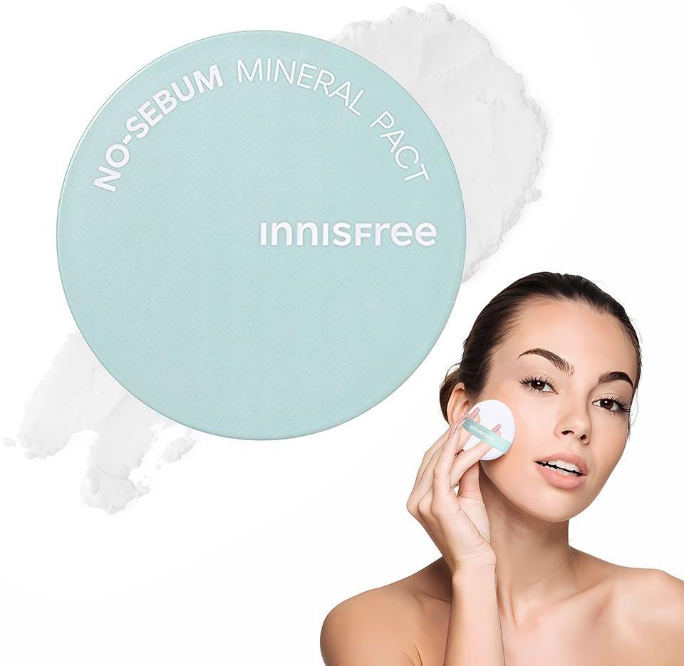 Innisfree No Sebum Mineral Pact to mineralny puder w kamieniu przeznaczony do pielęgnacji skóry tłustej, mieszanej, o nierównym/poszarzałym kolorycie i normalnej. Idealnie nadaje się do dokończenia makijażu. Oparty na naturalnych składnikach matuje skórę, odżywia ją i nawilża oraz przede wszystkim reguluje pracę gruczołów łojowych. Nie zawiera sztucznych aromatów, barwników, parabenów ani składników pochodzenia zwierzęcego. Nie był testowany na zwierzętach. Innisfree No Sebum Mineral Pact to mineralny puder w kamieniu. Pochłania nadmiar sebum, matuje i wygładza cerę. Zawarte w nim naturalne minerały z wyspy wulkanicznej Jeju oraz mięta regulują pracę gruczołów łojowych i odświeżają cerę. Odżywiają skórę i zapewniają odpowiedni poziom nawilżenia. W rezultacie skóra jest promienna i gładka przez cały dzień. Puder doskonale nadaje się do wykończenia makijażu. Przeznaczony do pielęgnacji cery normalnej, tłustej i mieszanej. Polecany szczególnie do cery poszarzałej o nie równym kolorycie. No Sebum Mineral Pact: matuje, wygładza, kontroluje wydzielanie sebum, idealny do wykończenia makijażu. Produkt nie zawiera sztucznych barwników, parabenów, talku, składników pochodzenia zwierzęcego, sztucznych substancji zapachowych i olei mineralnych. Sposób użycia: Stosować jako ostatni etap porannej pielęgnacji lub do wykończenia makijażu. Produkt nakładać przy pomocy aplikatora dołączonego do opakowania lub dużego, gęstego pędzla. Puder należy aplikować na skórę zgodnie z kierunkiem wzrostu włosków na twarzy. Skład: Mica, Silica, Ethylene/Acrylic Acid Copolymer, Corn Starch Modified, Polyethylene, Octyldodecylstearoyl Stearate, Squalane, Sorbitan Isostearate, Ethylheylglycerin, Glyceryl Caprylate, Dimethicone, Mineral Salts, Camelia Sinesis Leaf Extract