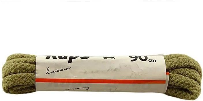 Oliwkowe okrągłe grube sznurówki do butów 90 cm Kaps idealne do nawlekania 10-12 oczek w cholewce obuwiowej. Szerokość sznurówek 5 mm.