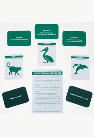 Jeśli chcesz urzeczywistniać różnorodne zmiany klientów/pacjentów, to narzędzie będzie właśnie dla Ciebie. Kreator zmian to praktyczne i uniwersalne narzędzie, które sprawdzi się zarówno w pracy z młodzieżą, jak i dorosłymi. Mogą z niego korzystać psycholodzy i psychoterapeuci, ale także nauczyciele, pedagodzy czy doradcy zawodowi. Powinni po nie sięgnąć również pozostali specjaliści od rozwoju osobistego i zawodowego. Narzędzie to jest idealne w pracy nad wprowadzeniem zmian w życiu Twoich pacjentów/klientów. Pomaga też poznać ich cechy osobowości oraz mocne strony. Inspiracją do powstania tego narzędzia był: dialog motywujący oraz idea terapii systemowej i terapii skoncentrowanej na rozwiązaniu. Narzędzie Kreator zmian ma wiele sposobów zastosowania. Karty wspierają ludzi w procesie zmiany, zwiększają ich świadomość i wzbudzają motywację do działania. Kreator zmian jest idealny dla osób, które wiedzą, nad jaką zmianą chcą pracować. To może być m.in.: schudnięcie, większa aktywność fizyczna, równowaga, rzucenie palenia papierosów, częstsze sprzątanie, praca nad asertywnością, poprawą relacji, pewnością siebie, prokrastynacją, oddelegowaniem zadań, zmianą pracy itd. itd. To narzędzie może również być użyteczne w procesie pracy z zespołami, które poszukują najlepszej drogi dotarcia do zmiany (np. zwiększenie sprzedaży, promocja produktów). Narzędzie stanowi pomoc dla tych klientów/pacjentów, którzy chcą wprowadzić w życie trwałe zmiany, zwiększając swoją świadomość. Stosując je, wydobędziesz ze swoich klientów maksymalny potencjał i wiarę we własne możliwości, talenty i predyspozycje, umożliwiając im harmonijny rozwój. Na kartach znajdziesz obrazki przedstawiające zwierzęta. Reprezentują one różnego rodzaju zasoby oraz cechy Twoich pacjentów/klientów. Dzięki temu pomagają one unaocznić drzemiący w nich potencjał. Praca z kartami wzmacnia więc pewność siebie, pomaga budować poczucie własnej wartości i samoakceptację. Twoi pacjenci/klienci rozwiną także swoją kreatywność i poczucie sprawczości, co przełoży się na ich efektywniejsze działania. Dzięki kartom osoby uczestniczące w grze uświadomią sobie w pełni swój potencjał, poznając swoje mocne strony i cechy osobowości. Narzędzie to ma wiele zastosowań, można je więc z łatwością dopasować do swoich potrzeb. W zestawie znajduje się 49 kart wskazujących na 101 zasobów, jakie klient/pacjent może posiadać; 1 karta ze znakiem zapytania, która pomaga wykreować zasoby jeszcze nie odkryte; 8 kart odrębnych numerowanych, które stanowią o przebiegu sesji; 1 karta do użycia przez klienta na potrzeby instrukcji nr 2; 83 karty z wartościami; 1 karta do wykreowania dodatkowych wartości, których nie zaprezentowano; 3 karty kategoryzujące wartości. Całość spakowana jest w poręczny jutowy woreczek. Karty pomagają w poszukiwaniu i nazywaniu własnego systemu wartości. Mogą być też inspiracją do tworzenia kolejnych ćwiczeń rozwojowych. W trakcie pracy poszerzają perspektywę, prowadząc w drodze do zmiany i planowaniu działań. Wspierają też rozważania nad własnymi wyborami, pomagając lepiej zrozumieć samego siebie. Odkrycie i nazwanie własnego systemu wartości to ważny krok w procesie świadomego rozwoju i planowania realizacji zmiany. To jest dla nas najważniejsze. System ten może być najsilniejszym stymulatorem rozwoju, ale także demotywatorem, jeśli zmiana nie jest z nim spójna. Wartości określają nasze potrzeby i cele, przez pryzmat których wybieramy sposób działania oraz postrzegamy otaczającą nas rzeczywistość. Wpływają one także na samoocenę i ocenę wyników podjętych działań. Kreator zmian to dwie talie kart. Pierwsza kreuje zmianę. Druga pokazuje wartości klienta/pacjenta i drogę do jego zmiany, którą te karty wyznaczają. Talii możemy używać niezależnie od siebie albo łącznie. Do kart dołączone są także dwie przykładowe instrukcje, służące do przeprowadzenia dodatkowych niezależnych sesji. Dzięki nim z narzędziem poradzą sobie osoby z dużym doświadczone, jak i te, które stawiają pierwsze kroki w zawodzie. Narzędzie zaprojektowane zostało w taki sposób, aby można było łatwo dopasować je do własnych potrzeb. Praca z narzędziem może być krótkim przerywnikiem w czasie sesji terapeutycznej lub można mu poświęcić nawet kilka spotkań.