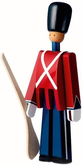 Figurka żołnierzyka z karabinem z kolekcji "The Royal Guards" legendarnego projektanta Kay Bojesena. "The Royal Danish Life Guards" to królewska straż broniąca zamków w Danii od 1658 roku. Kay zaprojektował swój pierwszy regiment w 1942 roku, w chrakterystycznych czarnych czapkach, czerwonych, galowych uniformach i z duńskim krzyżem. Każdy żołnierzyk jest zapakowany w pudełko-posterunek z monogramem duńskiej Królowej. Żołnierzyki The Royal Guards zostały wykonane z malowanego drewna bukowego.Materiał: drewno bukowe Wysokość: 22 cmWaga: 0.25 kgProjekt: Kay Bojesen