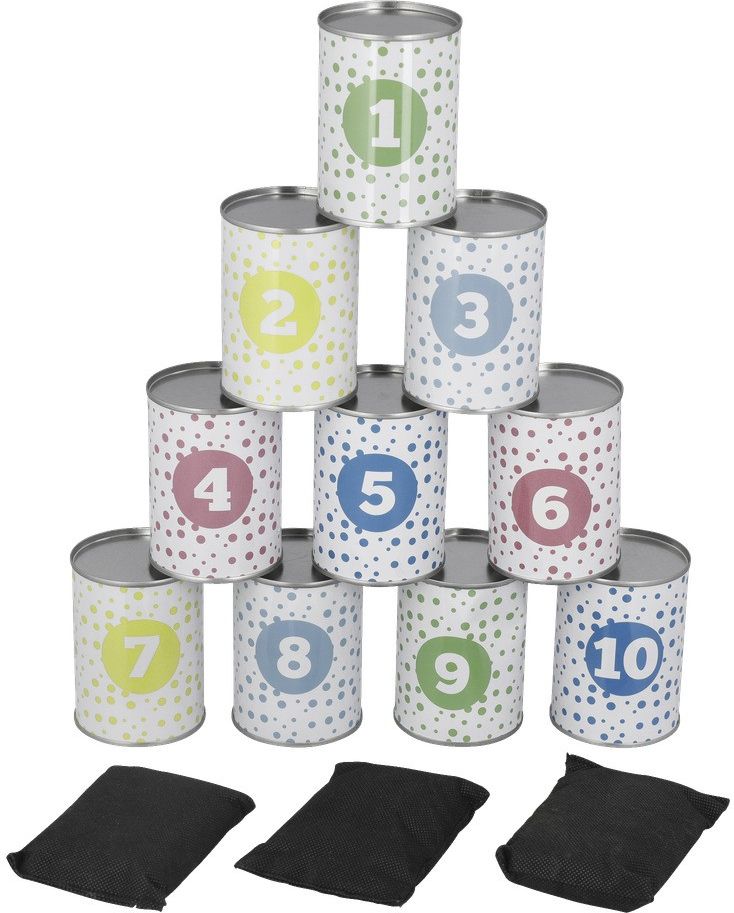 Gra w puszki dla każdej grupy wiekowej! Strąć jak najwięcej puszek za pomocą dołączonych do zestawu woreczków. Do użytku wewnątrz i na zewnątrz.