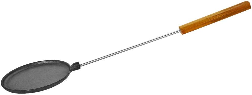 Niewielka patelnia do naleśników, do stosowania nad otwartym ogniem.Rozkoszuj się naleśnikami na łonie natury! Ta patelnia do naleśników z serii Kayoba Outdoor jest przeznaczona do stosowania nad otwartym ogniem i pozwala przygotować mniejsze naleśniki – szybko i łatwo, tak jak to być powinno. Opiekacz jest wykonany z żeliwa i stali oraz wyposażony w drewniany uchwyt o długości 54 cm.