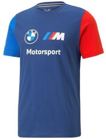 Koszulka T-shirt BMW M Motorsport Blue Codzienna koszulka w wyjątkowej trójkolorowej odsłonie - niebieska z jasnoniebieskim oraz czerwonym rękawem. Całość dopełniona kultowym logo BMW i symbolem ///M nad napisem „BMW Motorsport” wypełniającym front t-shirt'a. Koszulka stworzona z myślą o pasjonatach motorsportu jak i każdej osoby pragnącej zamanifestować swoją pasję do BMW M. Kolor: Blue/ niebieski z rękawami w kolorze jasnoniebieskim oraz czerwonym Materiał: 100% bawełna, w tym 30% bawełny pochodzącej z recyclingu Kultowe logo BMW, ///M oraz nadruk BMW M Motorsport na klatce piersiowej Nadruk z logo PUMA Cat na prawym rękawie