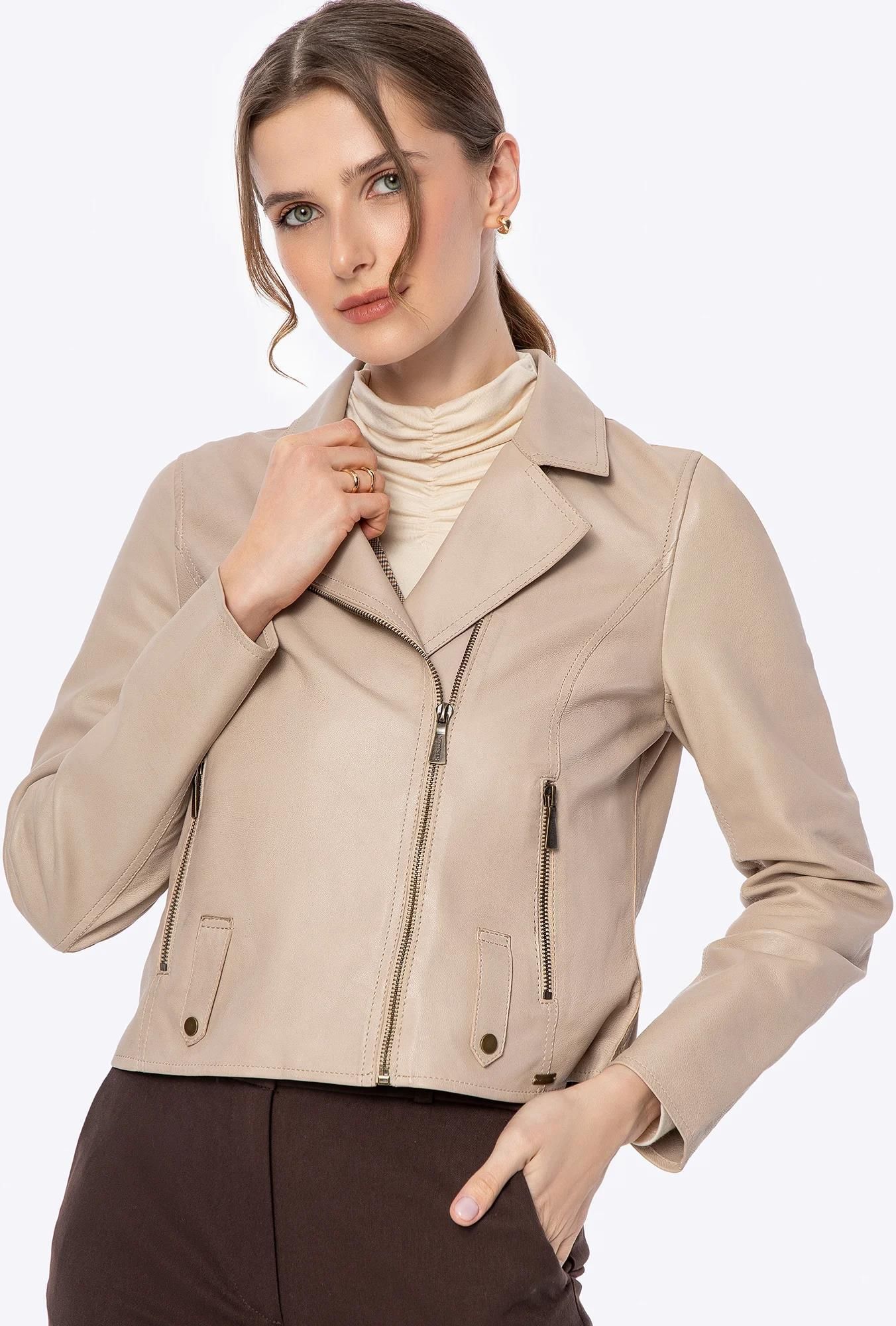 Kurtka damska ze skóry owczej kremowa Żyrardów