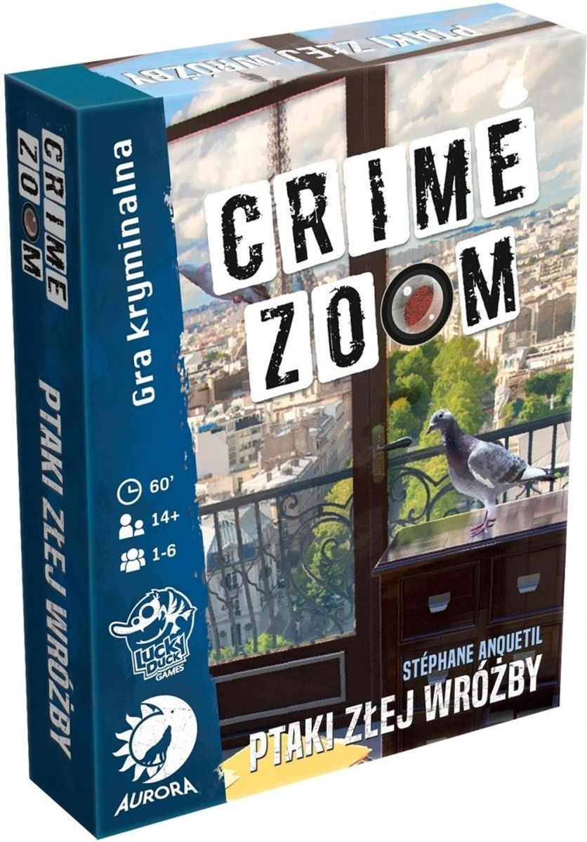 Crime Zoom: Ptaki Złej Wróżby Crime Zoom to seria gier detektywistycznych przeznaczonych dla 1-6 graczy. Zasady tłumaczy się w 2 minuty, a sama rozgrywka zajmuje około godziny. Crime Zoom: Ptaki złej wróżby przeniosą Was do współczesnego Paryża, do metropolii tyleż nowoczesnej, co bezdusznej. Ciało młodej, filigranowej kobiety znaleziono na podłodze w jednym z biurowców. Kto ją zabił? I dlaczego? Jak wyglądało jej życie prywatne? A zawodowe? Od czego zaczniecie śledztwo? Crime Zoom: Ptaki Złej Wróżby na czym polega? Jesteście detektywami starającymi się rozwikłać tajemniczą sprawę morderstwa. Miejsce zbrodni złożone jest z kart tworzących jedną dużą ilustrację. Aby zbadać ślad, wystarczy odwrócić kartę i podążyć dalej tym tropem. W toku śledztwa będziecie odwiedzać różne miejsca, przesłuchiwać podejrzanych, gromadzić dowody i wyciągać wnioski. Po przeprowadzeniu śledztwa wypełniacie raport, odpowiadając na pytania: Kto jest sprawcą? Jakie są dowody? Jaki był motyw? Na koniec zapoznajcie się z epilogiem, który pozwoli wam z innych stron przyjrzeć się motywacjom bohaterów. Crime Zoom: Ptaki Złej Wróżby zawartość: 55 kart instrukcja