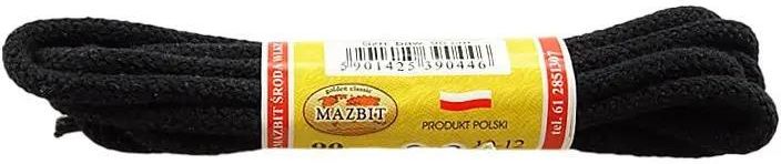 Czarne sznurówki do butów, okrągłe grube, 60 cm, Mazbit idealne do nawlekania 6-8 oczek w cholewce obuwiowej. Szerokość sznurówek 5 mm.