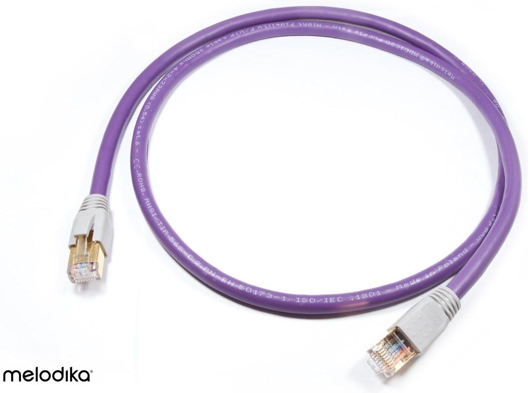 Melodika MDLAN kabel ethernet dedykowany do audio-video Linia kabli MDLAN jest odpowiedzią Melodiki na zmieniające się potrzeby i zachowania konsumentów. Stopniowe przechodzenie wymagających użytkowników audio do domeny cyfrowej rodzi nowe problemy z transferem "gęstych" digitalnych treści. Pliki DSD, strumieniowanie w jakości Master lub MQA, filmy w 4K Ultra HD - to wszystko stawia przed urządzeniami przesyłającymi dane w systemie audio-video bardzo wysokie wymagania. Podobnie dzieje się z akcesoriami, które zazwyczaj stanowią najsłabsze ogniwo systemu, a więc ograniczają jego wydajność. W przypadku kabli sieciowych jakość dostępnych na rynku kabli jest niezwykle szeroka i bardzo trudna do oceny, ponieważ przytłaczająca większość producentów nie podaje podstawowych parametrów oferowanych produktów. Melodika jak zawsze szczegółowo informuje o parametrach swoich produktów potwierdzając jakość wykonania oraz opieranie się na realnych parametrach, które faktycznie mają wpływ na jakość przesyłanych danych. Kabel sieciowy (skrętka) z pozłacanym wtykiem RJ45, przeznaczony do transmisji danych, dźwięku i obrazu o przepustowości binarnej powyżej 1Gb/s. Kabel wyposażony jest w dodatkowy ekran wspólny i żyłę uziemiającą, co chroni go przed wpływem działania zewnętrznych pól elektromagnetycznych, pomagając zachować czystość i ciągłość sygnału. Skrętka obsługuje pasmo częstotliwości do 350MHz. Najważniejsze cechy: • konstrukcja F/UTP • przekrój 4x2x0,57mm • przewodnik z wysokiej jakości miedzi OFC • impedancja falowa: 100 Ohm • średnica zewnętrzna: 7,5mm • pozłacany wtyk RJ45 • działa w zakresie temperatur od -30 do +70 stopni Celsjusza, stąd idealnie nadaje się również do instalacji