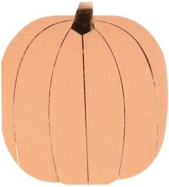 Zestaw 16 serwetek w kształcie dyni. Serwetki wykonane są z miękkiego i chłonnego papieru. Doskonałe na imprezę Halloweenową. Wymiary rozłożonej serwetki: 30,5 x 33 cm