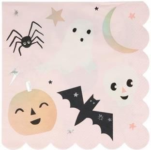 Meri Meri - Serwetki Pastel Halloween Zestaw 16 serwetek. Wymiary złożonej serwetki: 33 x 33 cm. Marka Meri Meri powstała ponad 35 lat temu w Los Angeles, a dziś działa również w Wielkiej Brytanii. Założeniem firmy jest tworzenie akcesoriów dla dzieci, dzięki którym będą przeżywać cudowne chwile. …