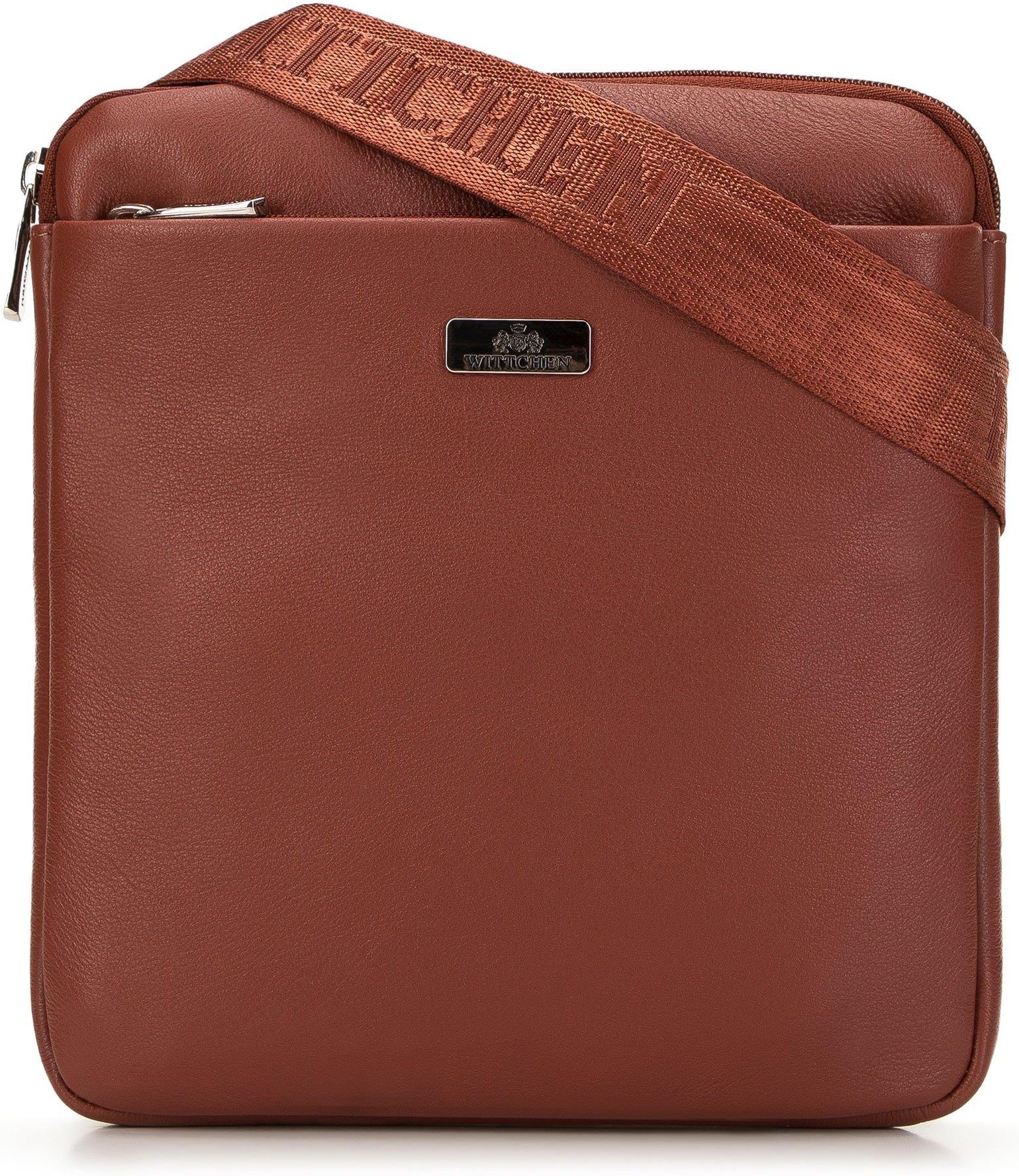 Mała męska torba ze skóry naturalnej. Ta męska listonoszka o prostym, podłużnym kroju to prawdziwa klasyka gatunku. Pasuje do casualowych stylizacji, a jej pojemne wnętrze pomieści wszystko, czego potrzebujesz - zarówno w trakcie miejskich eskapad, jak i podczas weekendu za miastem. Naturalna skóra zapewnia torbie najwyższą jakość i trwałość wykonania. Model posiada komorę główną z dwoma kieszonkami, a także kieszeń boczną, zamykaną na suwak. Komfort noszenia i stabilizację zapewnia szeroki, regulowany pasek z logo WITTCHEN. Z taką poręczną torbą zawsze będziesz stylowy i dobrze zorganizowany. Nasza rada: listonoszka świetnie prezentuje się z jeansowym outfitem. 100% skóra naturalna, kieszeń z przodu zamykana na suwak, kieszeń zewnętrzna od strony ciała zamykana na suwak, regulowany pasek z materiału, dwie kieszenie we wnętrzu głównej komory, ciemna podszewka w logo WITTCHEN.
