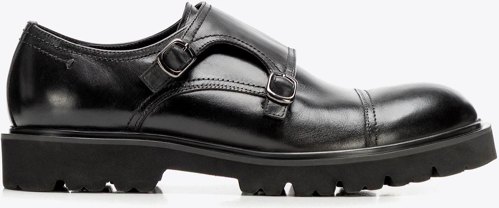 Męskie double monki ze skóry naturalnej na podeszwie track czarne Żyrardów