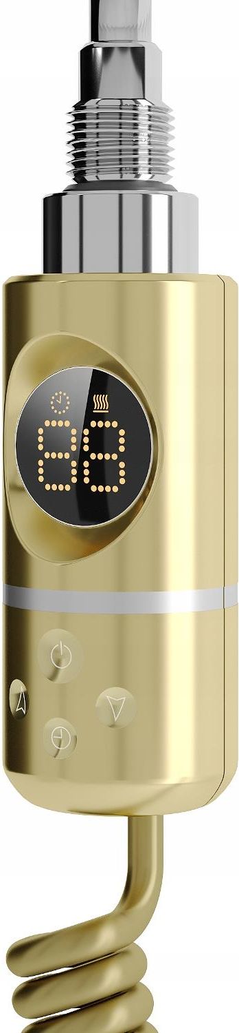 Mexen FA-I grzałka elektryczna z termostatem 600 W, złoty Producent: Mexen Seria: FA-I Kod produktu: W952-0600-50 Dane techniczne Długość całkowita: 656 mm Długość elementu grzejnego: 540 mm Kolor: Złoty Moc grzewcza: 600 W Napięcie robocze: 230V/50 Hz Przewód przyłączeniowy: 1,5 m Gwint grzałki: G 1/2" Stopień ochrony: IP44 Dioda LED wskazująca tryb pracy Dodatkowe zabezpieczenie przed pracą na "sucho" Grzałka do prawidłowego funkcjonowania wymaga wypełnienia grzejnika wodą lub mieszaniną wody np. z glikolem Funkcje grzałki Sensitive pozwala ustawić temperaturę w zakresie 40°C-65°C Comfort posiada opcje suszenia, która umożliwia ustawienie temperatury grzania w wybranej skali godzinowej Blokada rodzicielska pozwala na zablokowanie sterownika grzałki