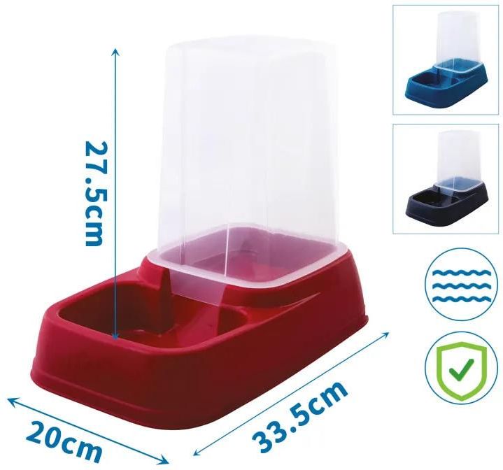 DUŻY AUTOMATYCZNY KARMNIK POIDŁO PODAJNIK DOZOWNIK NA KARMĘ / WODĘ DLA PSA KOTA Cechy produktu Dozownik na karmę lub wodę dla zwierząt domowych Zapewnia stały dostęp do jedzenia lub picia Przezroczysty pojemnik pozwala na szybkie ustalenie poziomu wody / jedzenia w zbiorniku Dozownik bezpieczny dla pupila Nietoksyczny materiał Łatwy w czyszczeniu Charakterystyka Pojemność 3,6 l Wysokość dozownika: 27,5 cm Wymiary miski: szerokość - 18,5 cm; długość - 32,5 cm