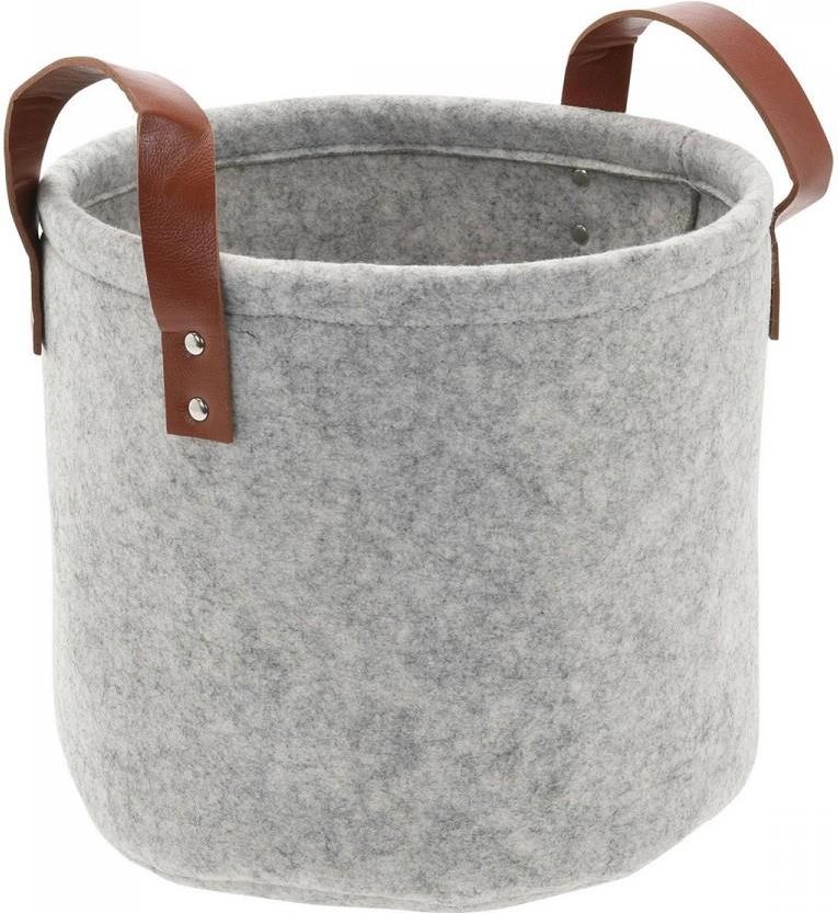 Organizer Intesi Fils S okrągły szary ✅ OPIS PRODUKTU Organizer Intesi Fils S okrągły wykonany został z filcu oraz skóry ekologicznej.Przechowywanie oraz porządkowanie rzeczy pozwala na ułożenie swojej przestrzeni w taki sposób, aby dobrze czuć się w przestrzeni jaka nas otacza. Oryginalne uchwyty sprawiają, że organizer jest praktyczny a dodatkowo prezentuje się ciekawie. Organizer Intesi Fils dostępny jest w 2 rozmiarach, 2 kolorach oraz 2 kształtach ✅ PODSTAWOWE PARAMETRY Szerokość: 28 cm Głębokość: 20 cm Wysokość całkowita: 16 cm Materiał: filc, skóra ekologiczna Kolor: szary ✅ GALERIA ZDJĘĆ