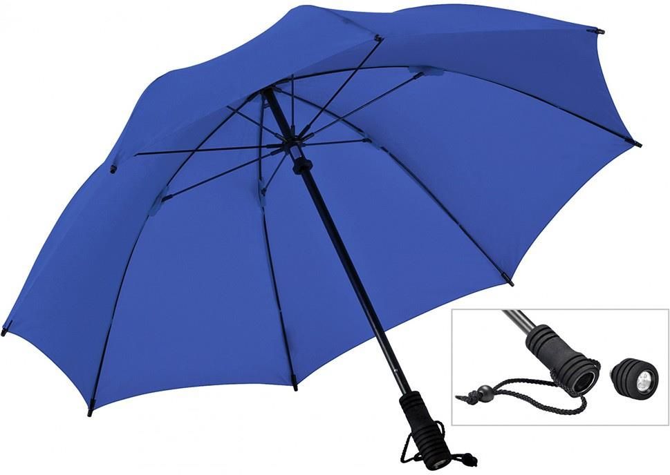 Wytrzymały turystyczny parasol Euroschirm Swing Flashlite ma wbudowaną w rączkę latarką LED.