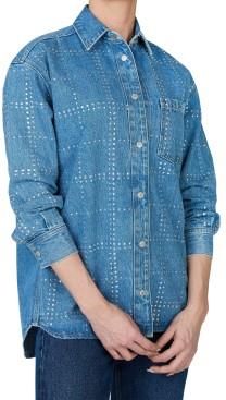 W tej odzieży zastosowano materiały pochodzące ze zrównoważonych źródeł i recyklingu, w tym co najmniej jeden z następujących: Lenzing® lyocell, wiskoza, zrównoważona bawełna, bawełna z recyklingu, poliester z recyklingu i nylon. - Koszula z elastycznego dżinsu - Krój oversize - Klasyczny kołnierzyk - Długie rękawy - Przednie zapięcie na guziki z zatrzaskami - Naszywana kieszeń na piersi - Brokatowe detale na całej powierzchni - Niebieski, sztywny denim - Mankiety zapinane na guziki - Wykonane w co najmniej 20% z materiałów pochodzących z recyklingu i innych zrównoważonych tkanin. Ref.: PL304958, Kolor: Niebieski, Styl: Zwykły, Materiał: Bawełna, Rękaw: Długie rękawy, Zrównoważony rozwój: Zrównoważony