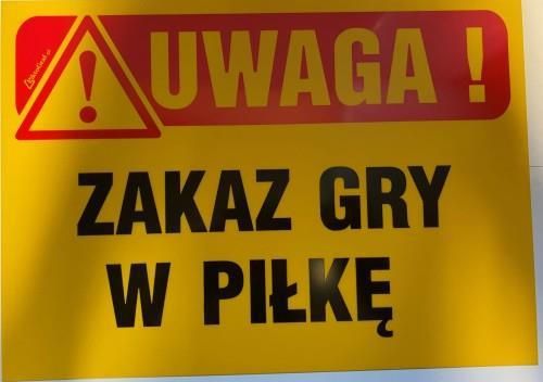 ZNAK Tablica UWAGA! ZAKAZ GRY W PIŁKĘ materiał Płyta PCV rozmiar 250x350mm
