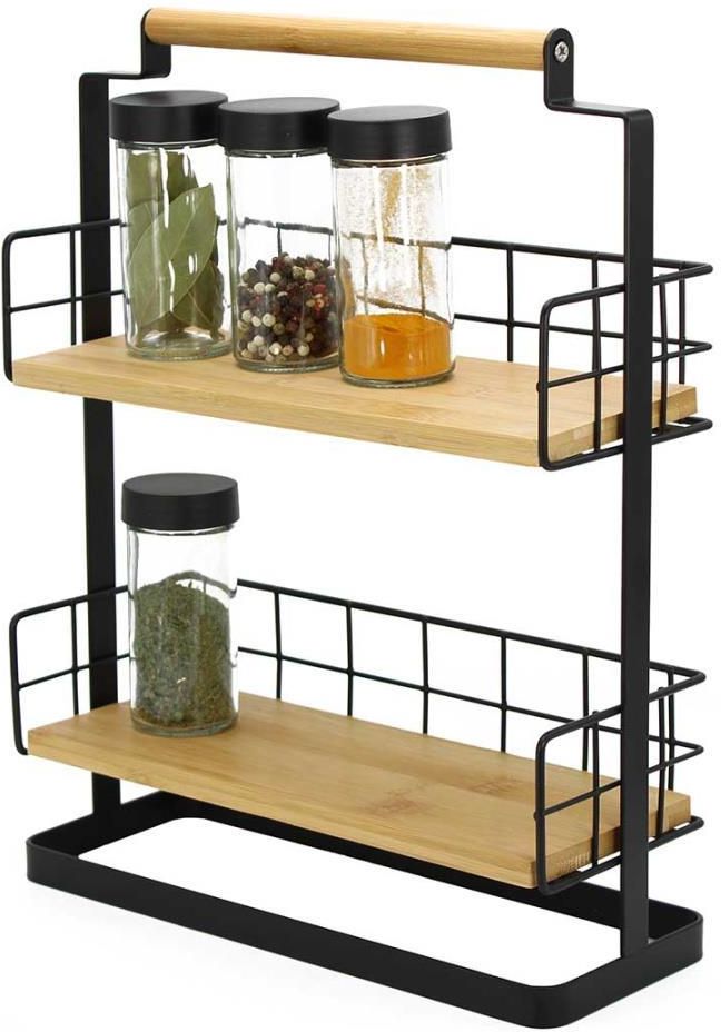 PÓŁKA KUCHENNA NA PRZYPRAWY AKCESORIA 1747 Uniwersalna półka kuchenna do przechowywania kubków, przypraw, ziół lub innych akcesoriów kuchennych. Uniwersalna, praktyczna półka stojąca o wymiarach 34 x 26,5 x 10 cm. Półka pomoże uporządkować w kuchni przyprawy i drobne akcesoria jak młynki do przypraw czy butelki z oliwą i octem. Wykonana z najwyżej jakości metalu w matowym, czarnym kolorze oraz drewna. Półka jest stabilna i solidna. Dwupoziomowa półka może służyć do przechowywania drobnych przedmiotów, artykułów spożywczych lub słoiczków z przyprawami. Przydatna również do przechowywania pojemników kuchennych, filiżanek czy kubków. Znajdzie swoje zastosowanie także w łazience, przedpokoju, pokoju, sypialni, a nawet biurze lub gabinecie. Utrzymana w industrialnym stylu typu LOFT. Pasuje do każdego wnętrza. Modny czarny kolor, będzie odpowiedni zarówno dla nowoczesnego, jak i klasycznego stylu. Uniwersalna półka kuchenna do przechowywania kubków, przypraw, ziół lub innych akcesoriów kuchennych. Uniwersalna, praktyczna półka stojąca o wymiarach 34 x 26,5 x 10 cm. Półka pomoże uporządkować w kuchni przyprawy i drobne akcesoria jak młynki do przypraw czy butelki z oliwą i octem. Wykonana z najwyżej jakości metalu w matowym, czarnym kolorze oraz drewna. Półka jest stabilna i solidna. Dwupoziomowa półka może służyć do przechowywania drobnych przedmiotów, artykułów spożywczych lub słoiczków z przyprawami. Przydatna również do przechowywania pojemników kuchennych, filiżanek czy kubków. Znajdzie swoje zastosowanie także w łazience, przedpokoju, pokoju, sypialni, a nawet biurze lub gabinecie. Utrzymana w industrialnym stylu typu LOFT. Pasuje do każdego wnętrza. Modny czarny kolor, będzie odpowiedni zarówno dla nowoczesnego, jak i klasycznego stylu. Parametry Długość: 33 Wysokość: 30 Szerokość: 13 Kod CN: 73239900