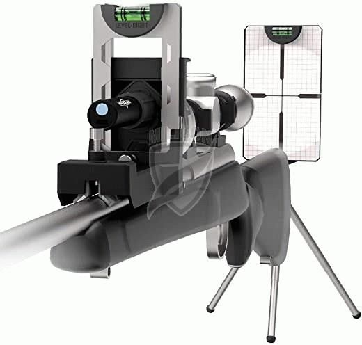 Profesjonalny przyrząd do poziomowania lunety, wykorzystujący projektor LED z akumulatorem i ekran, na który rzucony zostaje cień krzyża celowniczego. Zapewnia o wiele większą precyzję niż popularna metoda z użyciem poziomicy. Cechy: Umożliwia w prosty sposób dokładne wypoziomowanie lunety na broni Projektor LED ze specjalnym uchwytem z poziomicą oświetla krzyż celowniczy Mocowany na trójnogu ekran Precision Alignment Grid z siatką umożliwia wypoziomowanie krzyża Zaprojektowany do współpracy z karabinami bolt-action i lever-action z odsłoniętą lufą oraz z karabinkami posiadającymi górną szynę montażową Picatinny Zalecane jest użycie statywu rusznikarskiego oraz klucza dynamometrycznego podczas poziomowania Zawartość zestawu: Ekran Precision Alignment Grid Uchwyt z poziomicą do montażu projektora Montaż uchwytu do szyny Picatinny Montaż uchwytu do lufy karabinowej Mini trójnóg do rozstawienia ekranu Akumulatorowy projektor LED Kabel USB do ładowania projektora splitter Dane techniczne Waga (zestaw): 864 g