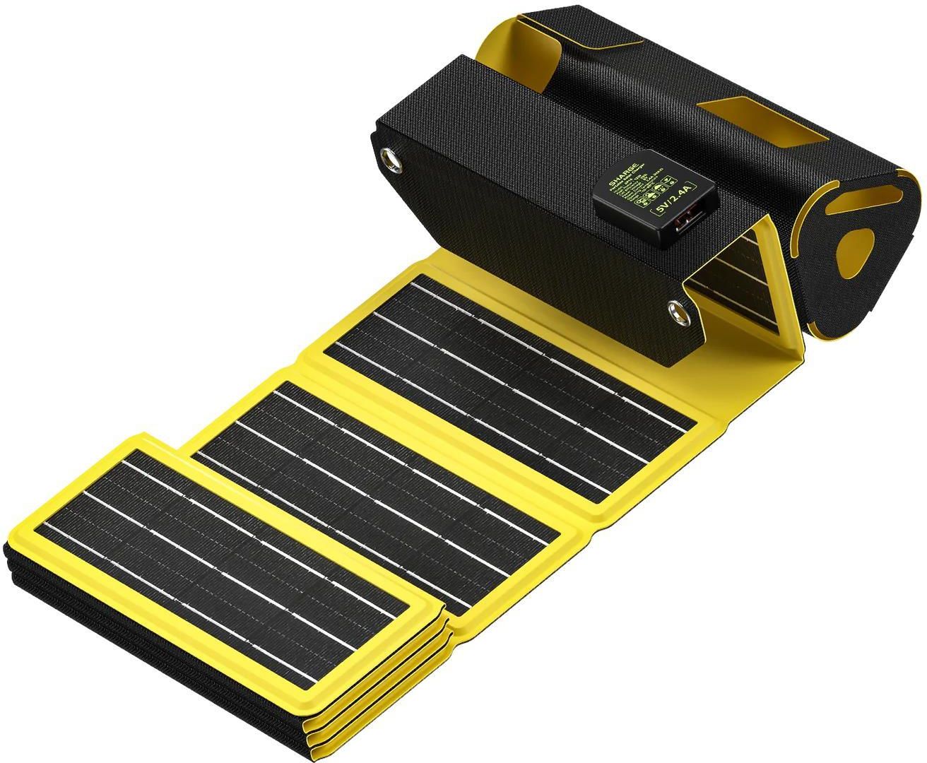 Power bank SHARGE Panel słoneczny Shargeek 170 Power bank SHARGE Panel Słoneczny Shargeek 170 to innowacyjne urządzenie łączące funkcje ładowania solarnego i klasycznego. Posiada panel słoneczny, który umożliwia ładowanie baterii energią słoneczną, co jest idealne na wyjazdy na łono natury. Jego pojemność wynosi 10,000 mAh, co pozwala na kilkukrotne naładowanie smartfona. Wyposażony w porty USB-A i USB-C, zapewnia szybkie ładowanie wielu urządzeń jednocześnie. Solidna, wodoodporna konstrukcja sprawia, że jest odporny na trudne warunki atmosferyczne. Dodatkowo, wbudowany wskaźnik LED informuje o poziomie naładowania baterii, co czyni go praktycznym i niezawodnym rozwiązaniem. Konstrukcja dla power banku 170W Oprócz 12-częściowych paneli słonecznych, które pochłaniają energię słoneczną, ta ładowarka słoneczna została również zaprojektowana z etui ochronnym, które jest odpowiednie dla rozmiaru power banku Shargeek 170, co jest wygodniejsze dla 170W podczas wychodzenia z domu. Szeroka kompatybilność Ładowarka z panelem słonecznym może ładować power bank, telefony, iPady, słuchawki i inne urządzenia za pomocą dołączonego kabla USB A do USB C. Możesz także ładować inne urządzenia, takie jak latarka, używając kabla z portem USB-A. Wodoodporny i Dualable Wodoodporność na poziomie IP54 i panele słoneczne SunPower z obudową PU sprawiają, że składany panel słoneczny jest odporny na warunki atmosferyczne i wytrzymały podczas aktywności na świeżym powietrzu. Wyższa konwersja energii słonecznej 23% współczynnik konwersji umożliwia przenośnemu panelowi słonecznemu Shargeek ładowanie do 2,4 A w bezpośrednim świetle słonecznym. Maksymalna moc 12 W zapewnia wystarczającą moc dla urządzeń. Przenośny kempingowy panel słoneczny Ta słoneczna ładowarka do telefonu ma składaną konstrukcję, dzięki czemu można ją łatwo umieścić w plecaku i wygodniej przenosić na kemping.