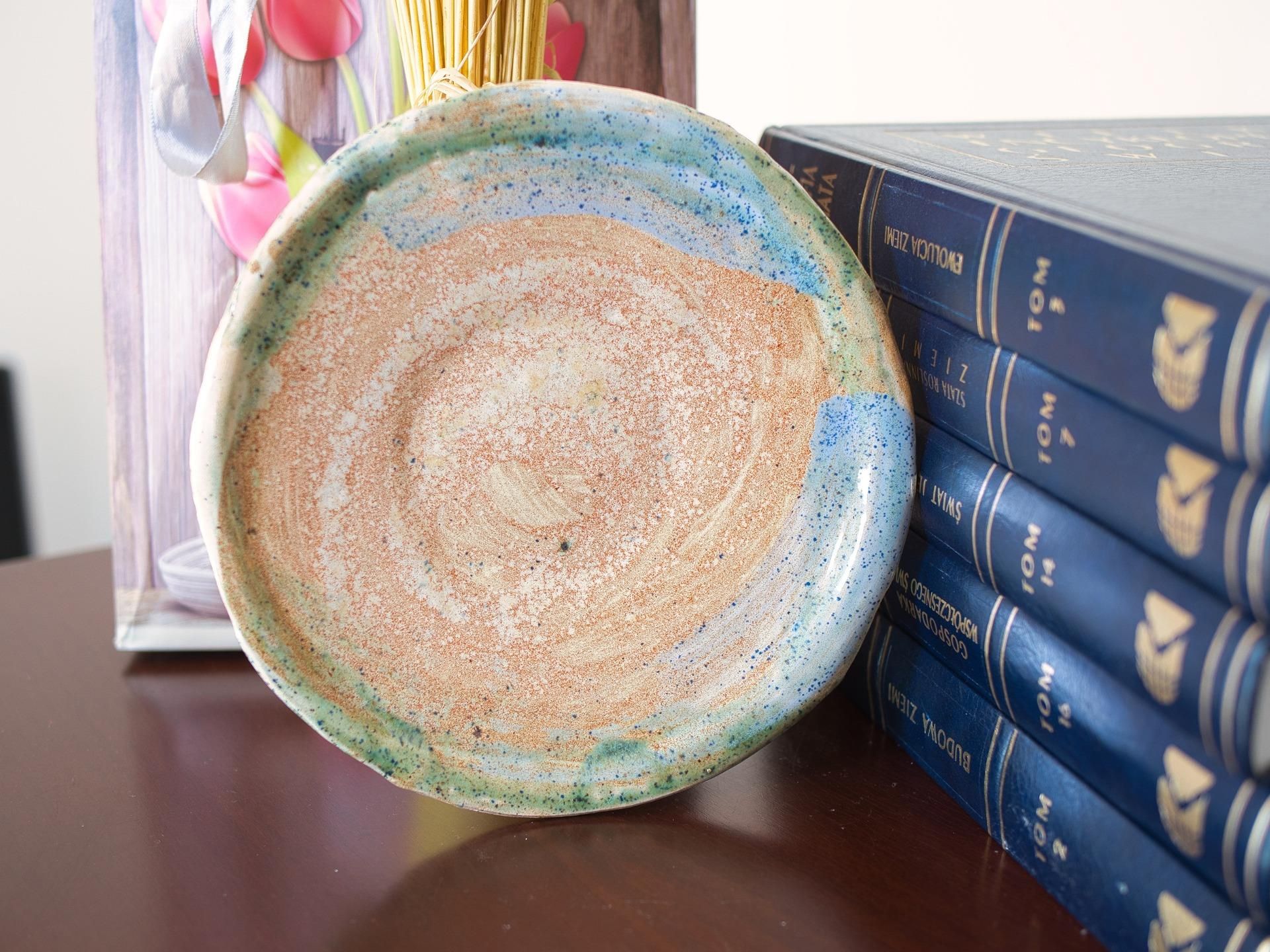 Ręcznie wykonany ceramiczny talerz z kolekcji Siena, na deser lub dekorację. Talerz jest cienki i lekki. Stworzony dla mojej własnej marki - Vrona. Kolor: zielony, niebieski, beżowy, pomarańczowy Wymiary: 6,9" / 17,7 cm Waga: 170g Najczęściej zadawane pytania: -Wszystko robię sam, używając …
