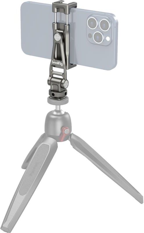 SmallRig 3559 uchwyt do smartfona Wyposażony w mocowanie na zimną stopkę i gwintowane otwory 1/4 "-20 na dole, może być przymocowany do górnej zimnej stopki aparatu jako monitor lub do wykonania zdjęcia z dwóch kamer lub przymocowany do dowolnej zimnej stopki lub sprzętu z 1/4" -20 śrub, np. trójnogi SmallRig 3559 Wielofunkcyjny uniwersalny metalowy uchwyt do smartfona Przechyla się o 180 w celu wygodnego monitorowania i obraca się o 360 w celu szybkiego przełączania między ujęciem poziomym i pionowym. Podwójne zimne buty łączą mikrofon i diody LED w ujęciach pionowych, transmisjach na żywo, vlogowaniu. Przenośny uchwyt waży tylko 60 g i jest wykonany z mocnego i trwałego metalu oraz wyposażony w antypoślizgowe silikonowe podkładki, które chronią smartfony przed zarysowaniami. Udźwig do 500g Kompatybilność: Smartfon (w etui) o szerokości mniejszej niż 83mm.