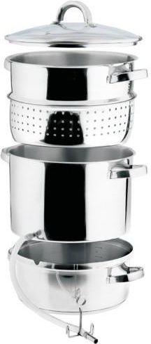 Sokownik STEINHOFF SH-450 8 L Największa średnica naczynia [cm]: 26 Pojemność [l]: 8 Wskaźnik nagrzania: Nie Przeznaczenie: Kuchnie ceramiczne, Kuchnie elektryczne, Kuchnie gazowe, Kuchnie indukcyjne Indeks: 882861 Sokownik STEINHOFF SH-450 8 L unkcjonalny sokownik o pojemności 8 l. Wykonany ze stali nierdzewnej, idealny do robienia soków z własnego, ekologicznego sadu. Sokownik wyposażony w 3 warstwowe dno termiczne, które równomiernie rozprowadza ciepło. Produkt dedykowany do każdego rodzaju kuchni, w tym indukcji. Każdy element sokownika można myć w zmywarce. Średnica 26 cm. W skład zestawu wchodzi: garnek do gotowania, garnek do zbierania soku wraz z silikonowym wężykiem, garnek na owoce oraz szklana pokrywa z dziurką do odprowadzania pary. Największa średnica naczynia [cm]: 26 Pojemność [l]: 8 Powłoka wewnętrzna: Stal nierdzewna Powłoka zewnętrzna: Stal nierdzewna Wskaźnik nagrzania: Nie Kolor: Srebrny Możliwość mycia w zmywarce: Tak Przeznaczenie: Kuchnie ceramiczne Kuchnie elektryczne Kuchnie gazowe Kuchnie halogenowe Kuchnie indukcyjne Rodzaj: Sokownik Zawartość zestawu: Silikonowy wężyk Funkcje dodatkowe: Otwór w pokrywie do uwalniania pary