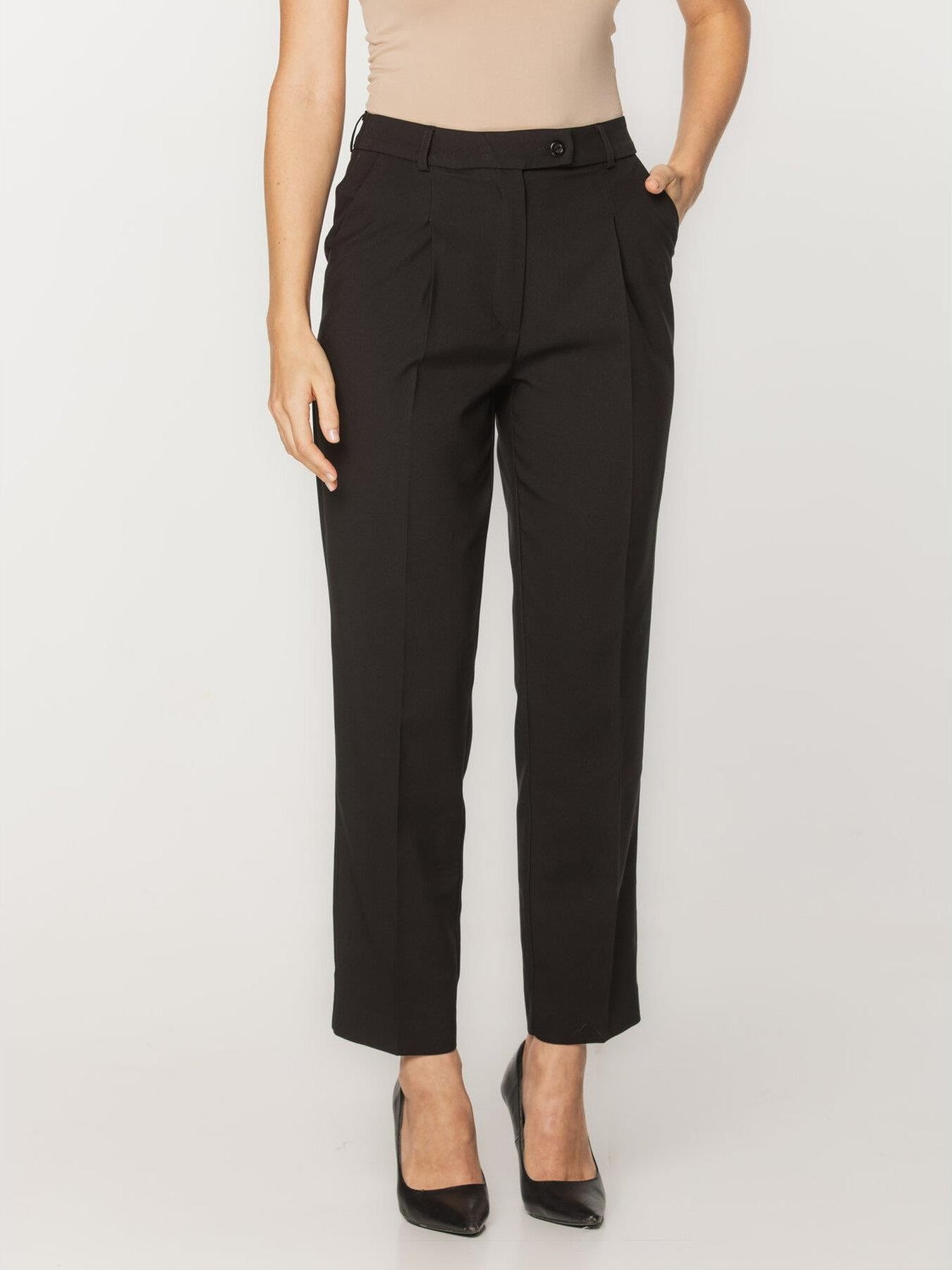 Damskie spodnie z zakładkami Wybierając spodnie garniturowe marki Willsoor bez wątpienia przekonasz się do noszenia ich nie tylko od święta, ale również na co dzień! Spodnie zostały uszyte z delikatnej, miękkiej i elastycznej tkaniny podkreślającej sylwetkę, dzięki czemu nawet nie poczujesz, że masz na sobie tak niebywale elegancki strój. Proste nogawki posiadają zaprasowane kanty. W pasie znajdują się szerokie szlufki oraz guzik i zapięcie. Spodnie mają 2 kieszenie boczne. Tkanina: 37% wiskoza, 59% poliester, 4% elastan Kolor główny: czarne o gładkiej fakturze Nogawki: proste, zakładki w pasie Kieszenie: dwie boczne Producent: Willsoor Gwarancja: 24 m-ce Wyprodukowano w Polsce