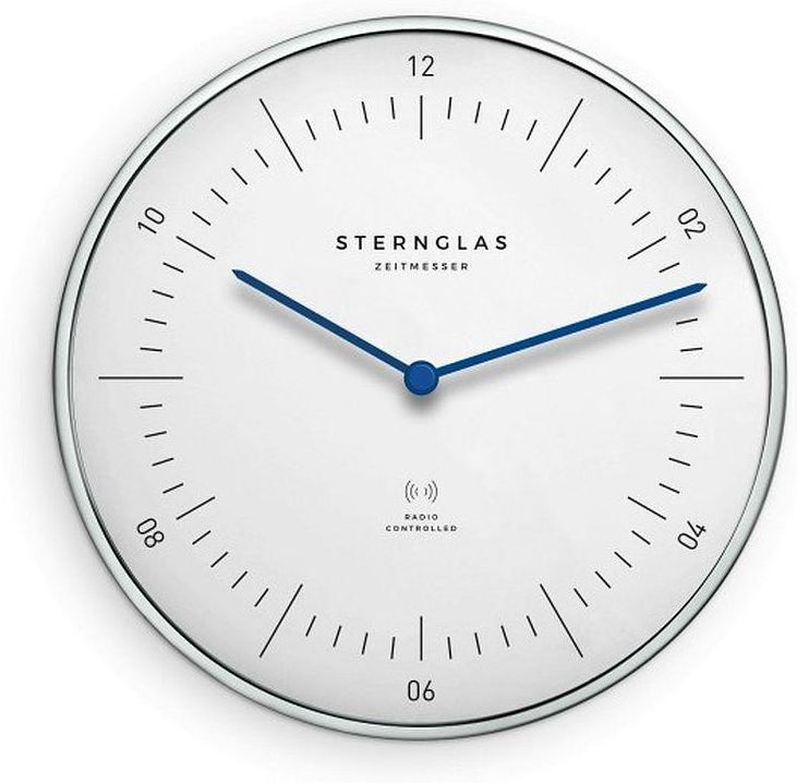 Zegar ścienny Sternglas S14-008 Naos Radio Control, 30 cm Nowoczesny Design Wprowadź minimalistyczną elegancję do swojego wnętrza dzięki zegarowi ściennemu Sternglas Naos Radio Control. Ten wyjątkowy zegar, inspirowany kultowym designem zegarków na rękę, oferuje połączenie precyzji, stylu i funkcjonalności. Cechy produktu Cicha praca: Płynny mechanizm sekundnika zapewnia idealną ciszę, co czyni go idealnym do sypialni, biura czy salonu. Radio Control: Automatyczna synchronizacja czasu dla maksymalnej dokładności. Minimalistyczny design: Średnica 30 cm i grubość 3 cm – idealne proporcje do każdego pomieszczenia. Materiały premium: Wykonany z wysokiej jakości aluminium, szkła mineralnego i trwałego tworzywa sztucznego. Dlaczego warto wybrać Sternglas Naos? Zegar Sternglas Naos to nie tylko narzędzie do odmierzania czasu, ale również element dekoracyjny, który podkreśla nowoczesny styl Twojego wnętrza. Bezgłośny mechanizm i wysoka jakość wykonania gwarantują pełną satysfakcję. Dodaj odrobinę niemieckiej precyzji i wyjątkowego designu do swojego domu! Dane techniczne Średnica: 30 cm Grubość: 3 cm Materiał: Aluminium, szkło mineralne, tworzywo sztuczne Kolor: Biały z Niebieskimi wskazówkam
