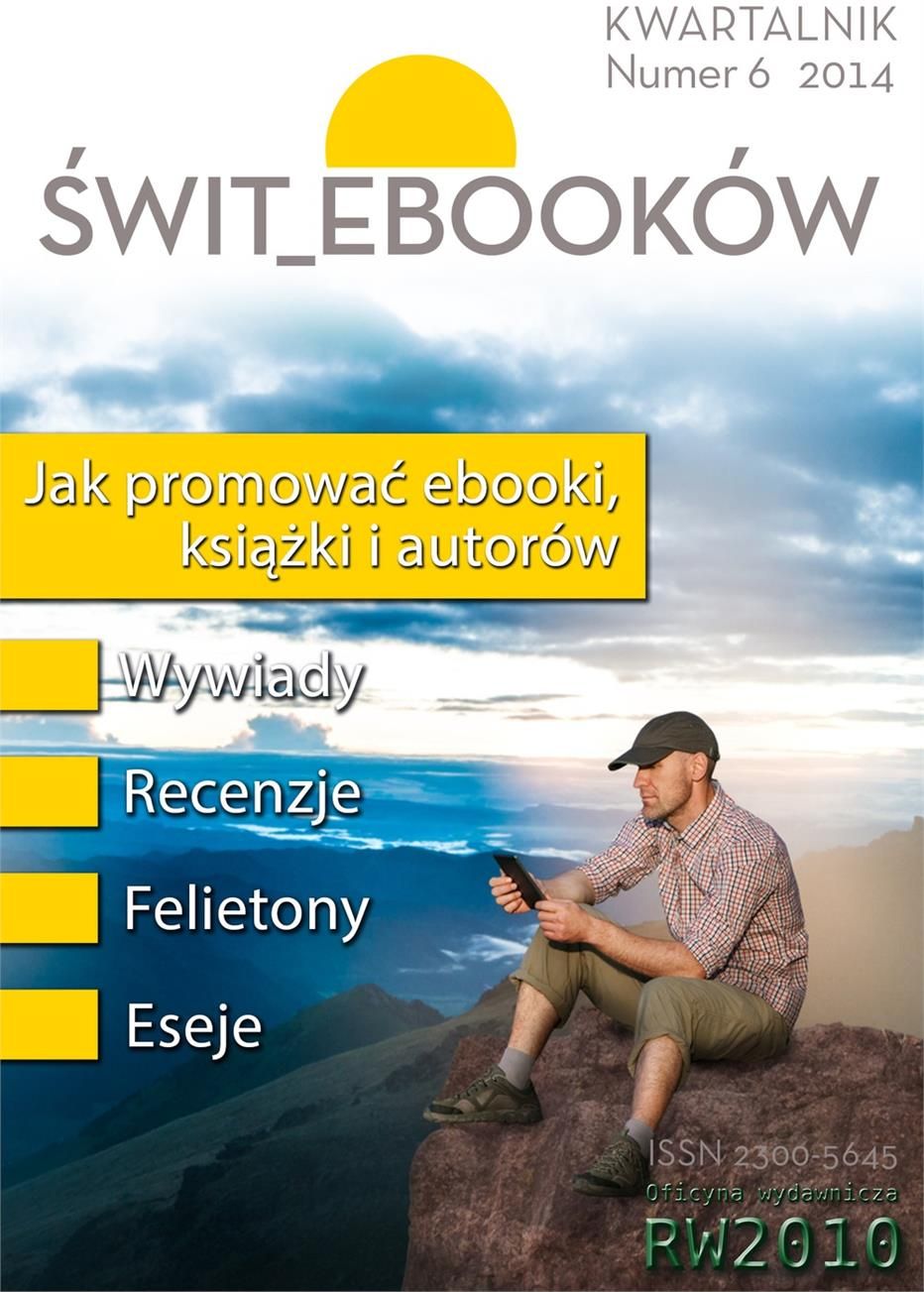 Pierwszy polski e-magazyn o e-książkach, e-pisarzach, e-czytelnictwie, self-publishingu. Wywiady, felietony, recenzje, opinie, analizy rynku, eseje, opowiadania. Zapraszamy i zachęcamy do współpracy: recenzentów, autorów, wydawców, dystrybutorów. Tym razem tematem wiodącym jest promocja – autorów, książek, ebooków. Jeśli interesuje was ten temat – przeczytajcie koniecznie! Poza tym ciekawe wywiady i recenzje, interesująca proza oraz dwa eseje w nowym dziale. Przy szóstym numerze współpracowali: Baribal, Leon Berg, Piotr Chmielewski, Katarzyna Chojecka-Jędrasiak, Ciernik i Pokrzywnica, Cirilla, Robert Drózd, Małgorzata Gwara, Aleksandra Jursza, Łukasz Kielban, Marta Kor, Kamil Leziak, Ksenia Olkusz, Maciej Parowski, Małgorzata Karolina Piekarska, Adam Podlewski, Paulina Poniewska, Ewa Chani Skalec,Aleksandra Smolarek, Łukasz Sporyszkiewicz, Paulina Stoparek, Katarzyna, Szewioła-Nagel, Jacek Wąsowicz.